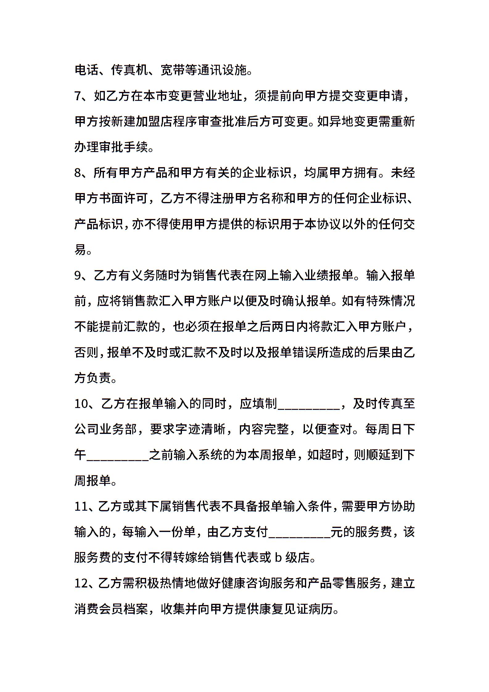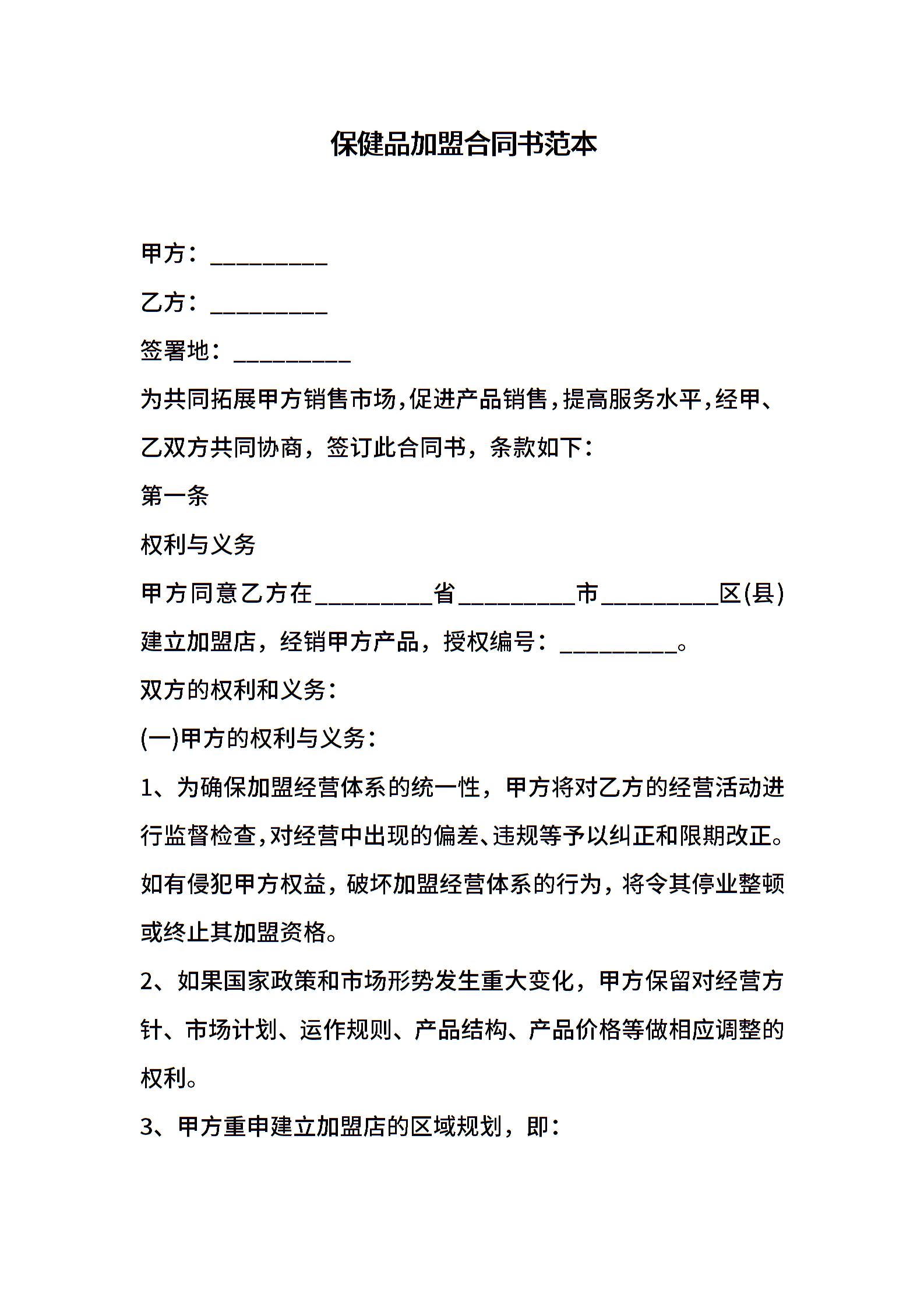 保健品加盟合同书范本