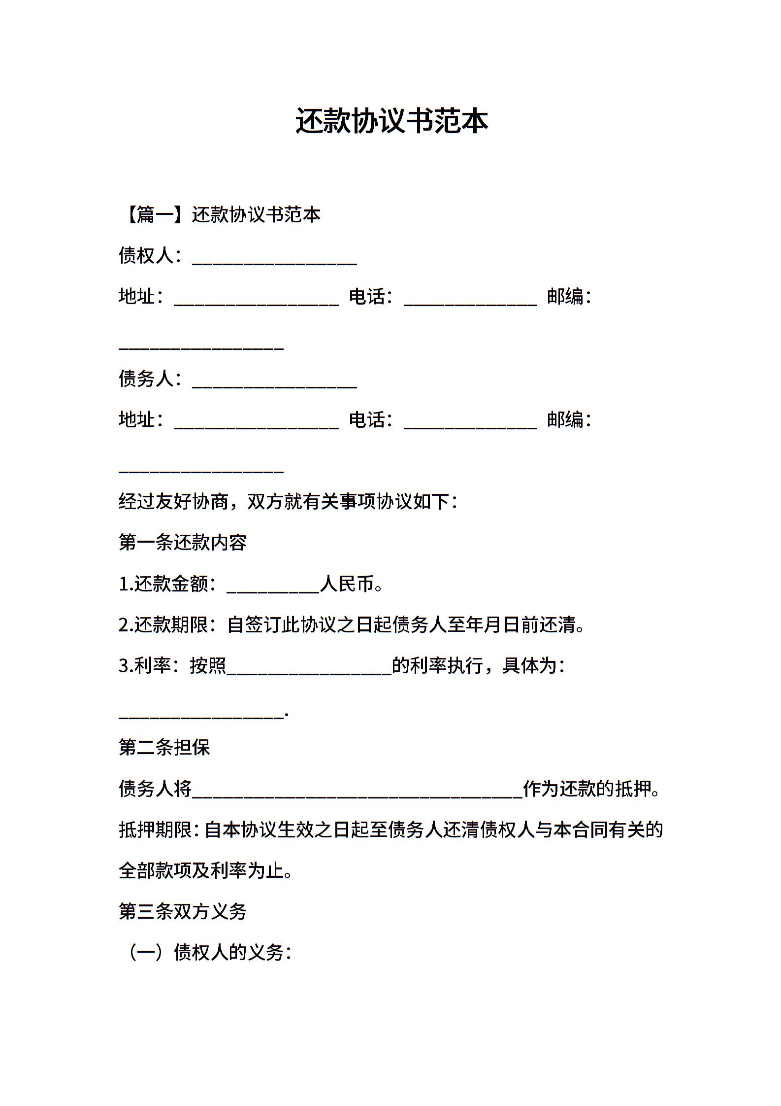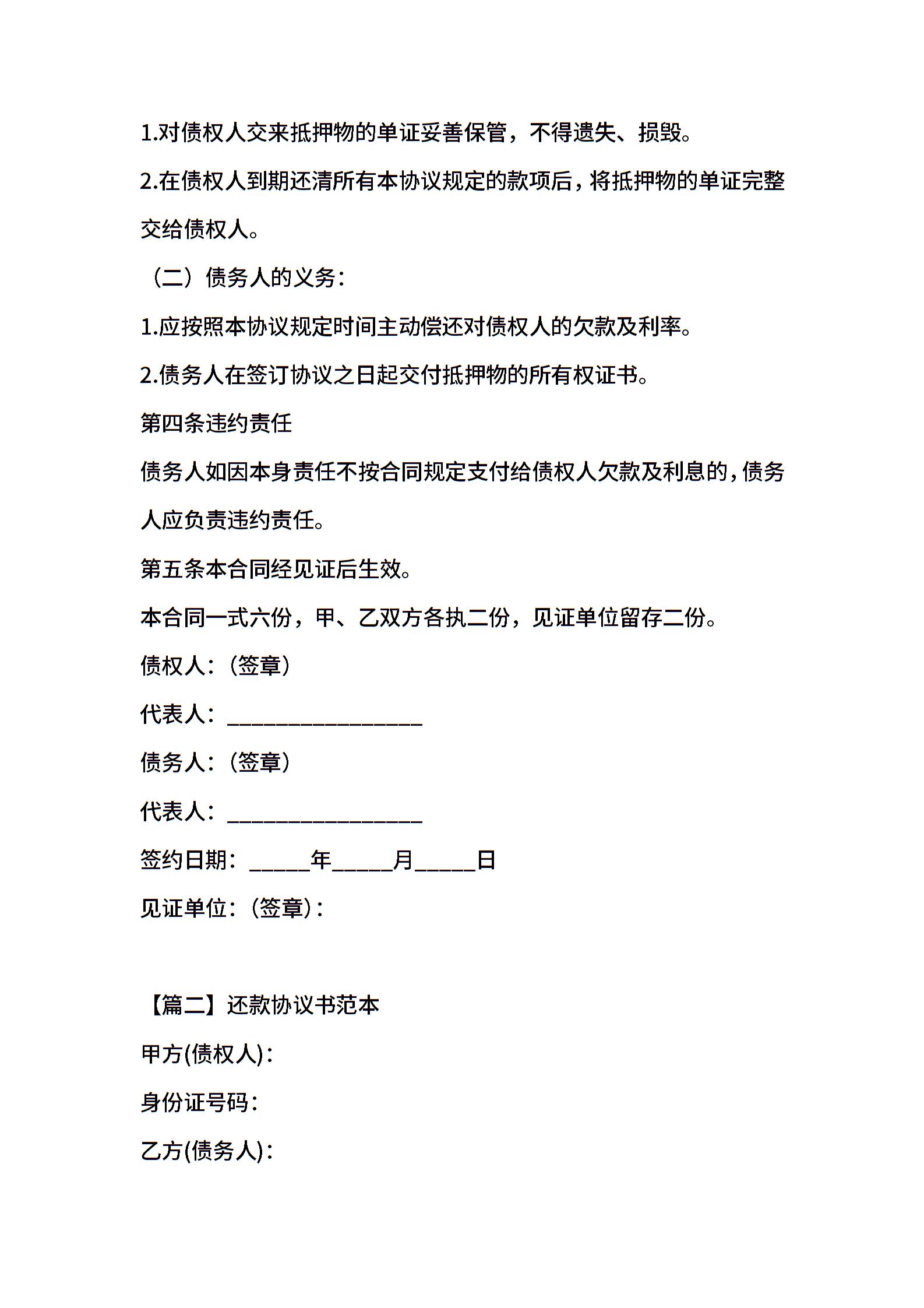 还款协议书范本 (2)
