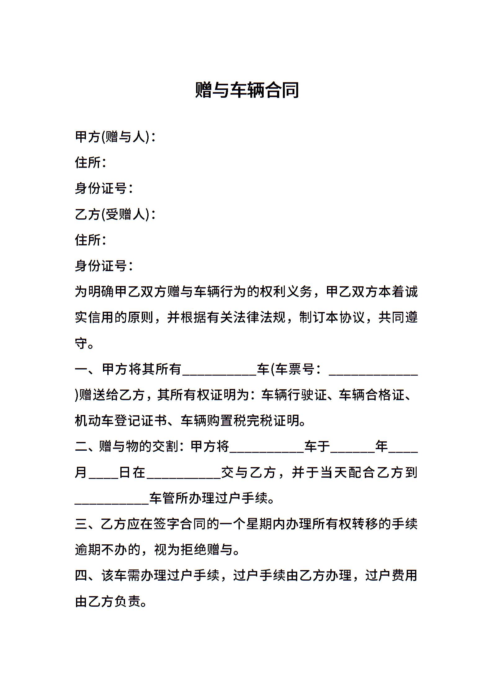 赠与车辆合同