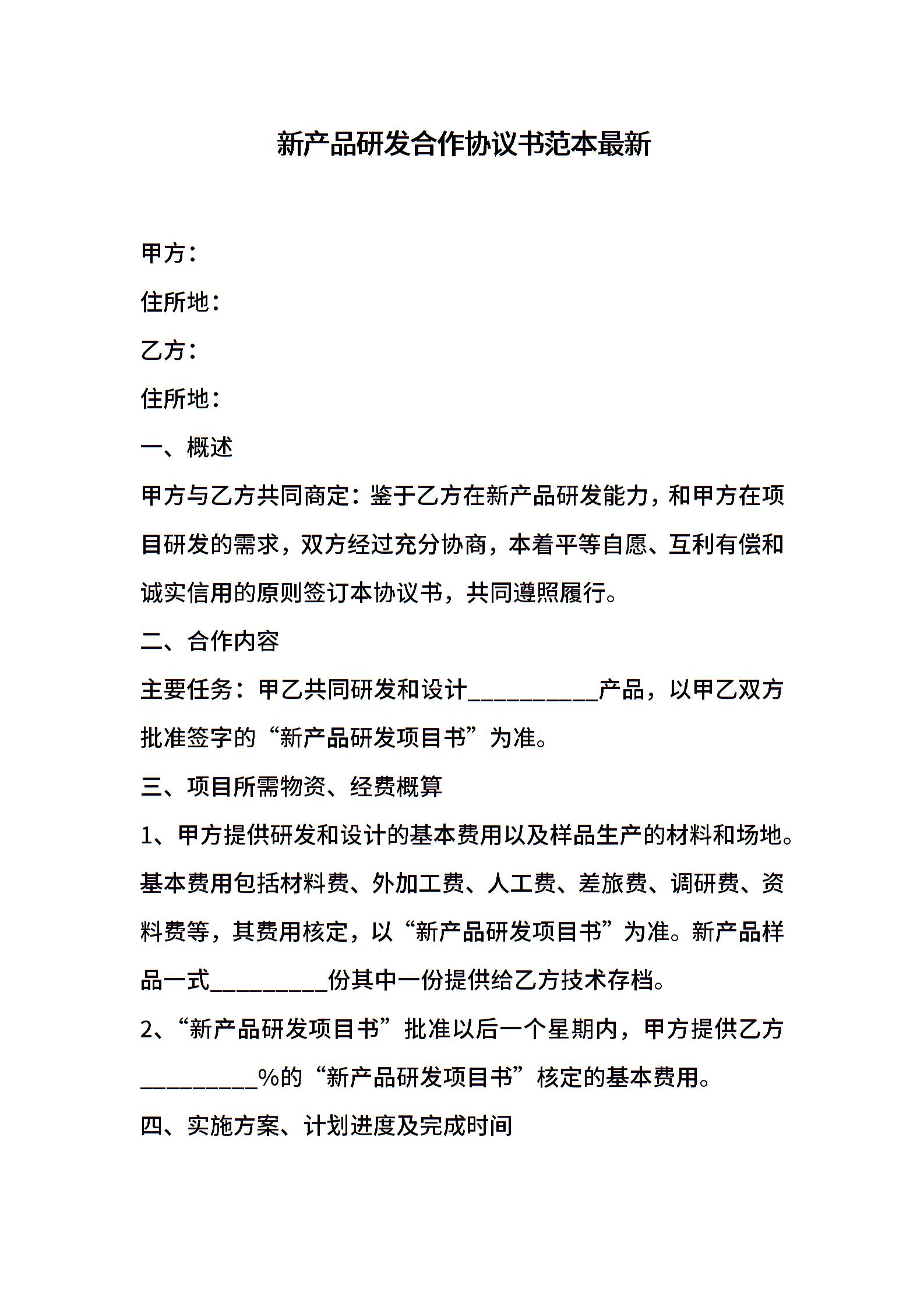 新产品研发合作协议书范本最新