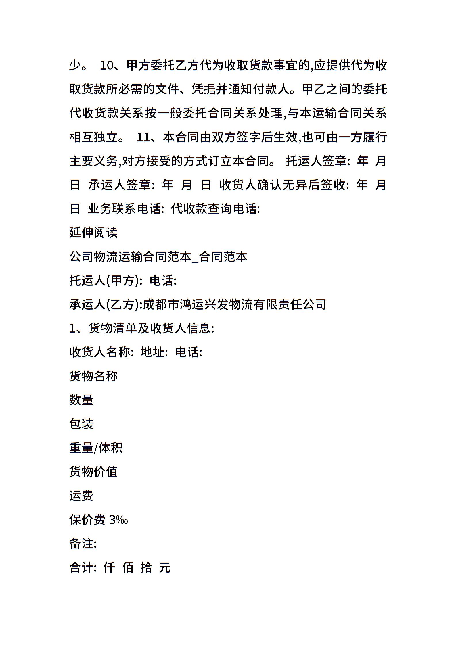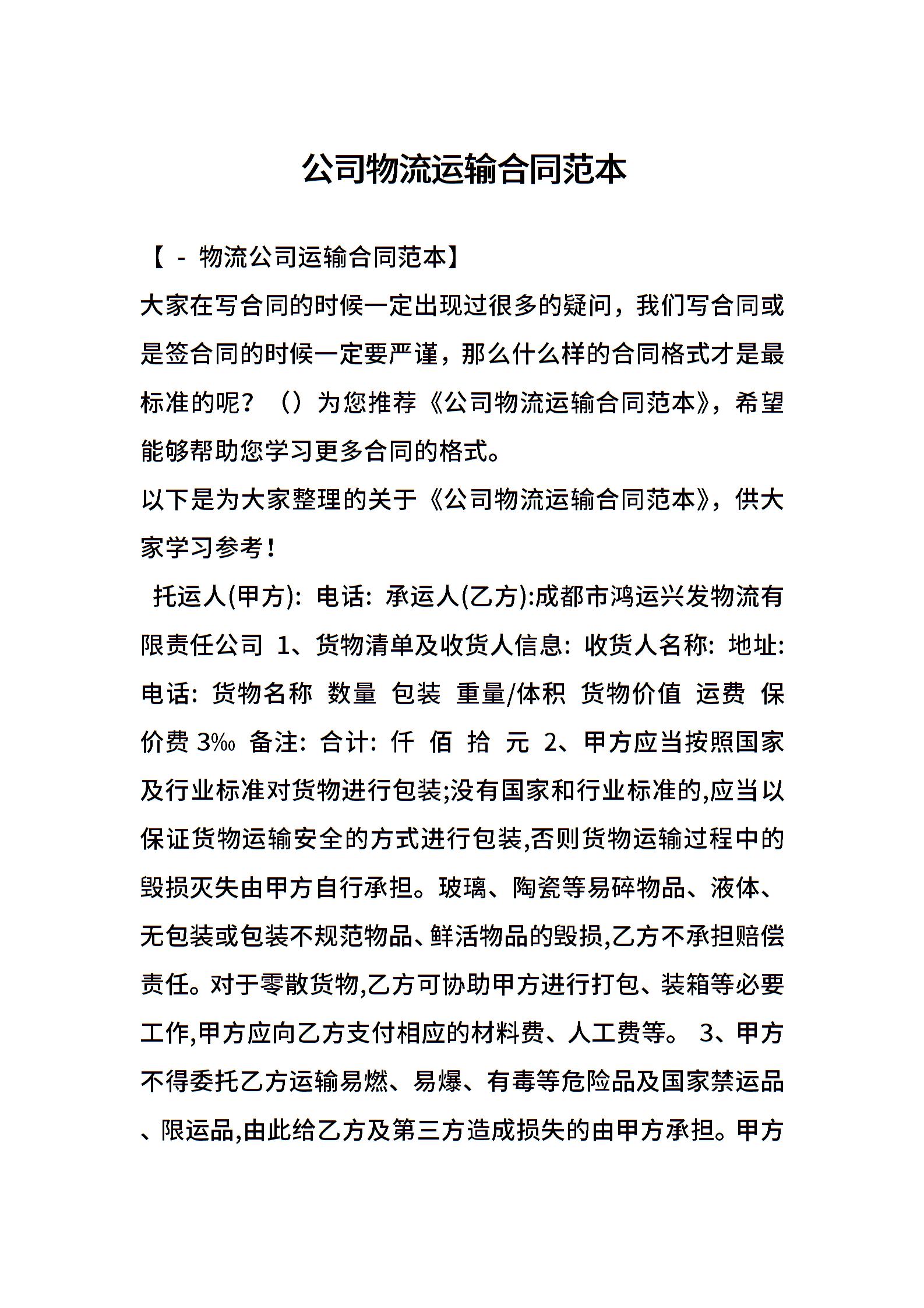 公司物流运输合同范本