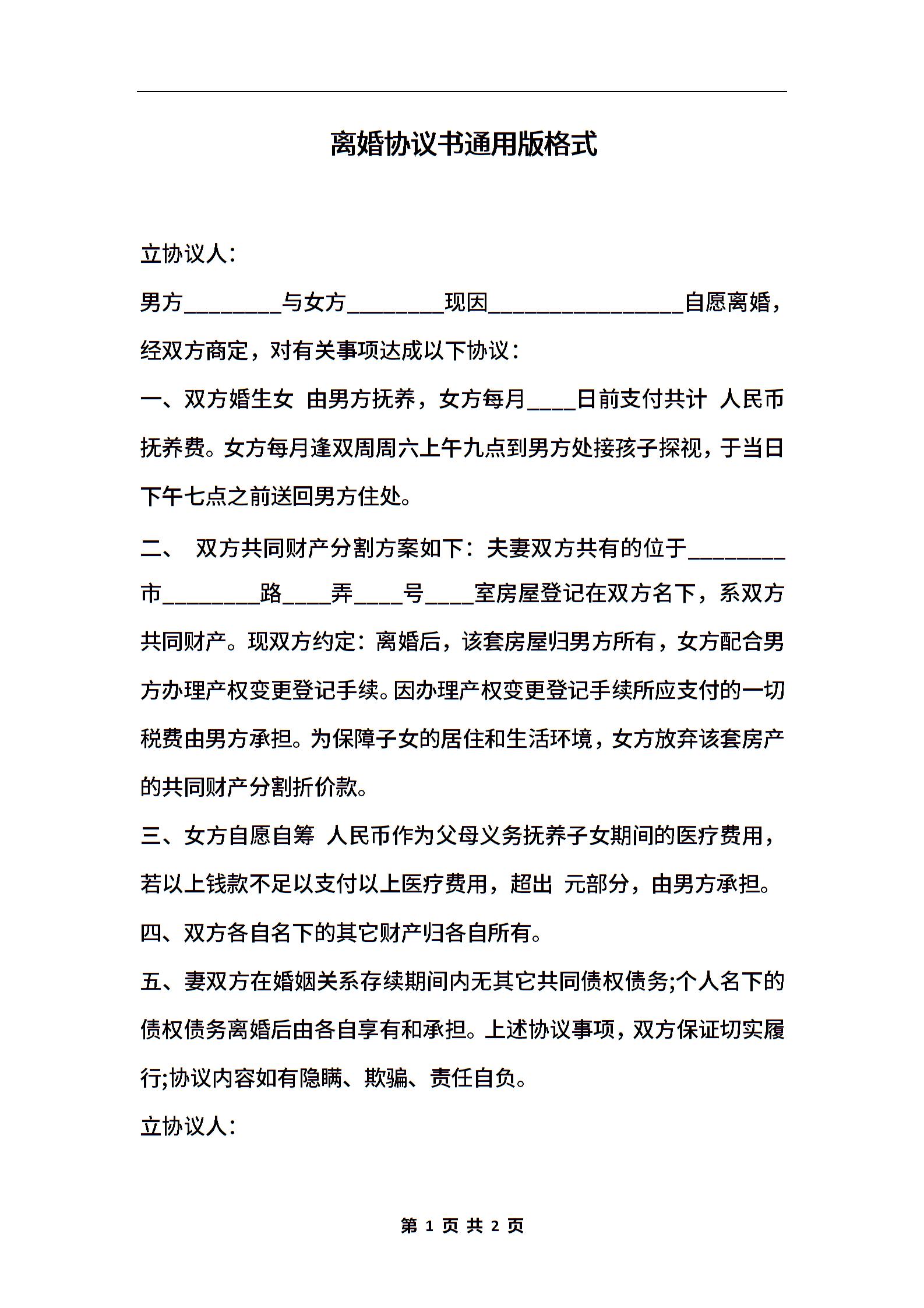 当前位置:量子办公 > 合同模板 > 离婚协议 >