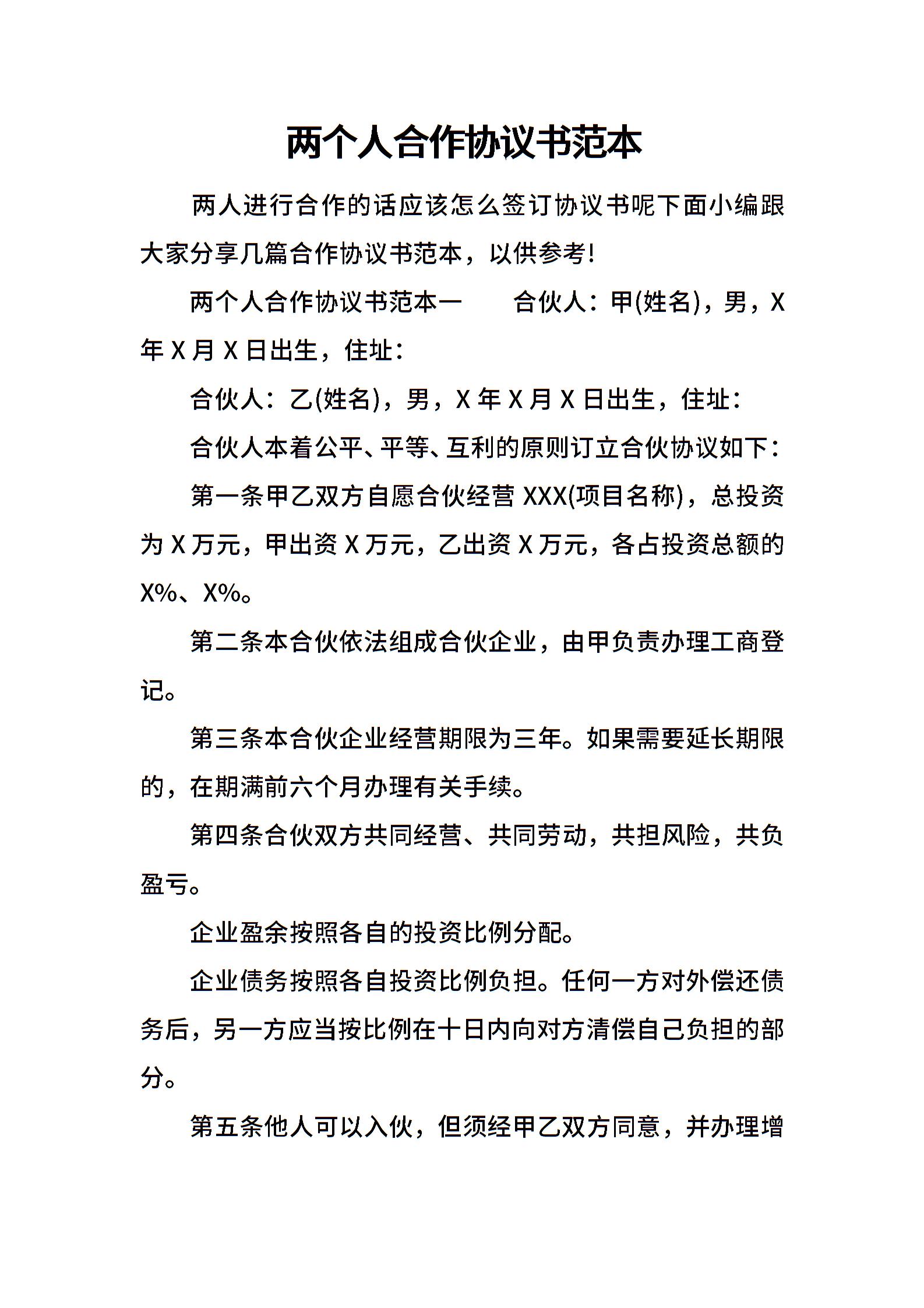 当前位置:量子办公 > 合同模板 > 合作合同 >