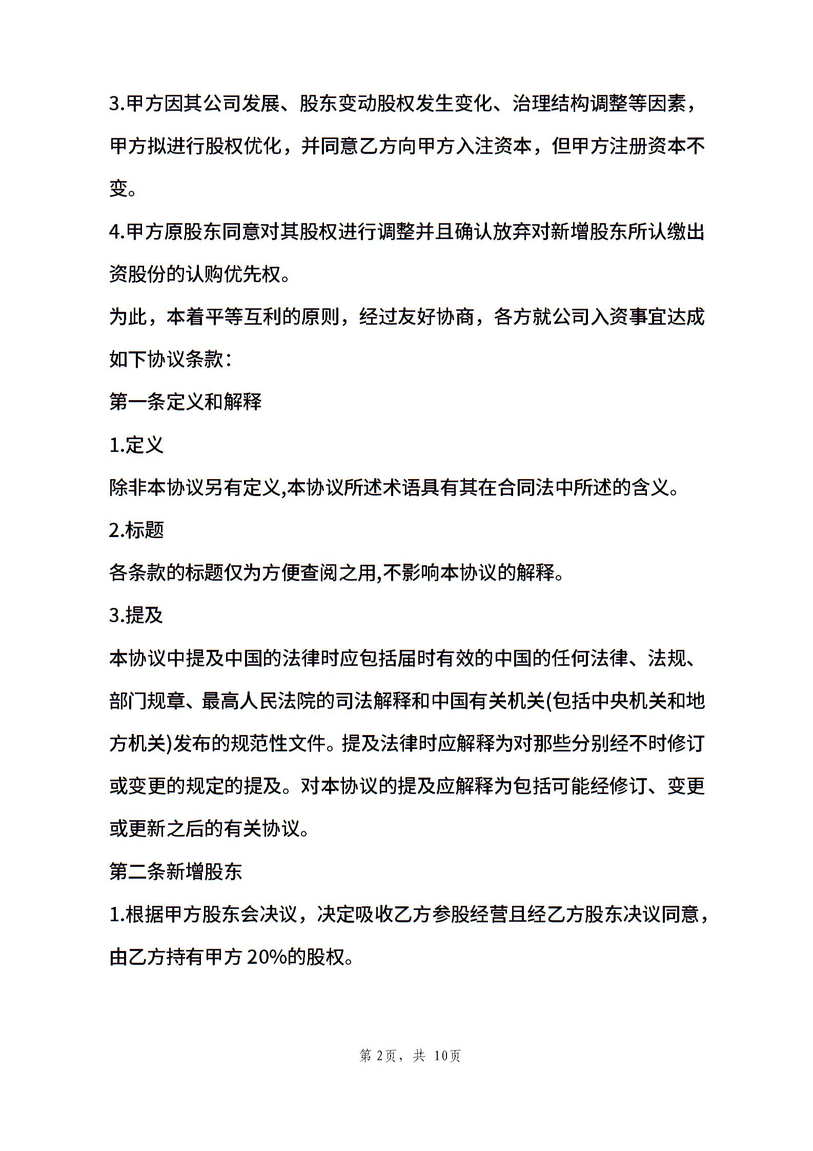 投资入股协议书2014.01.28(这是两个公司使用的投资入股协议案例)