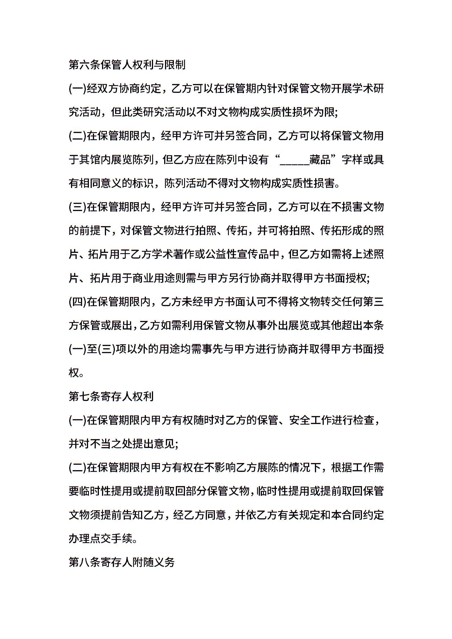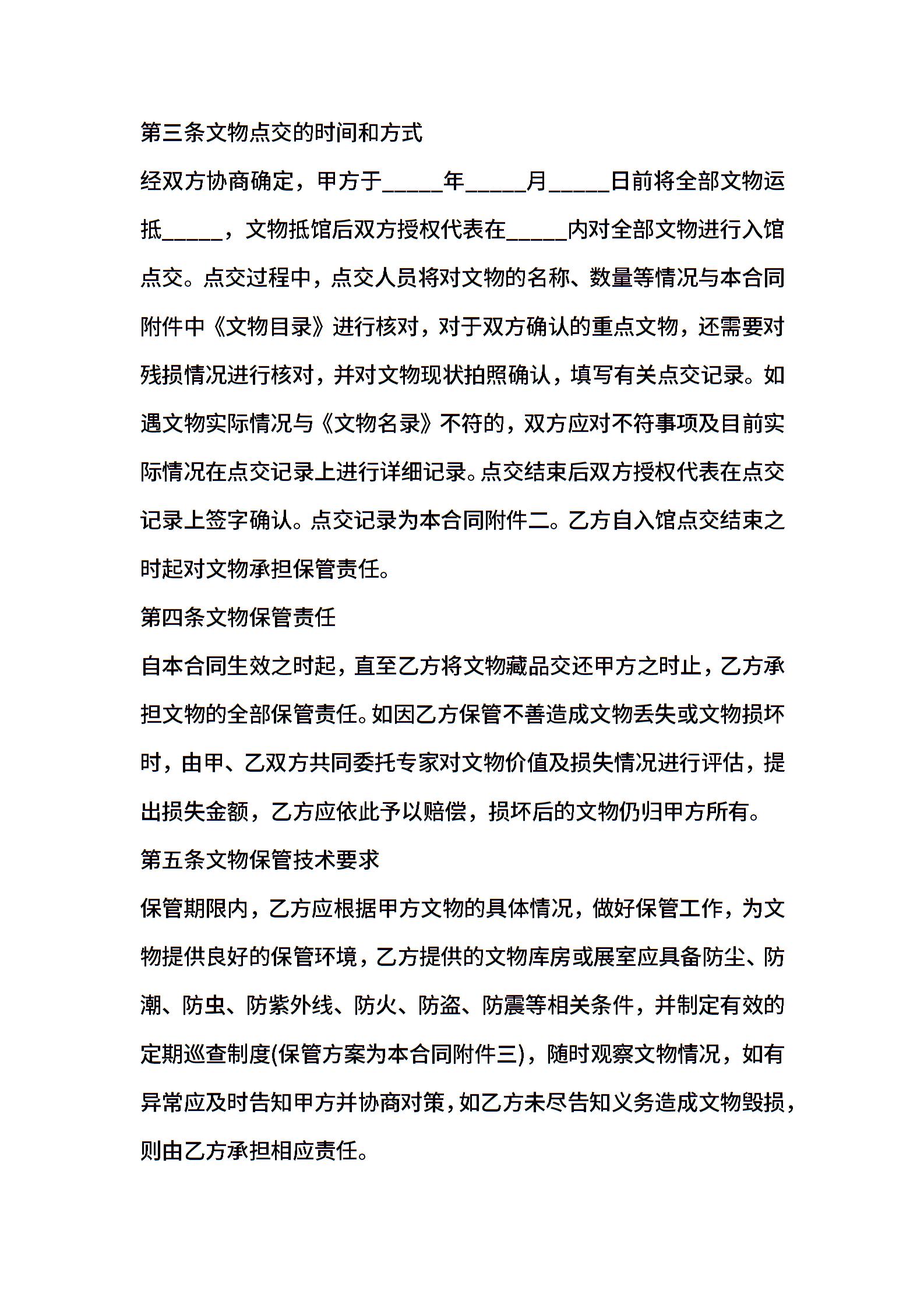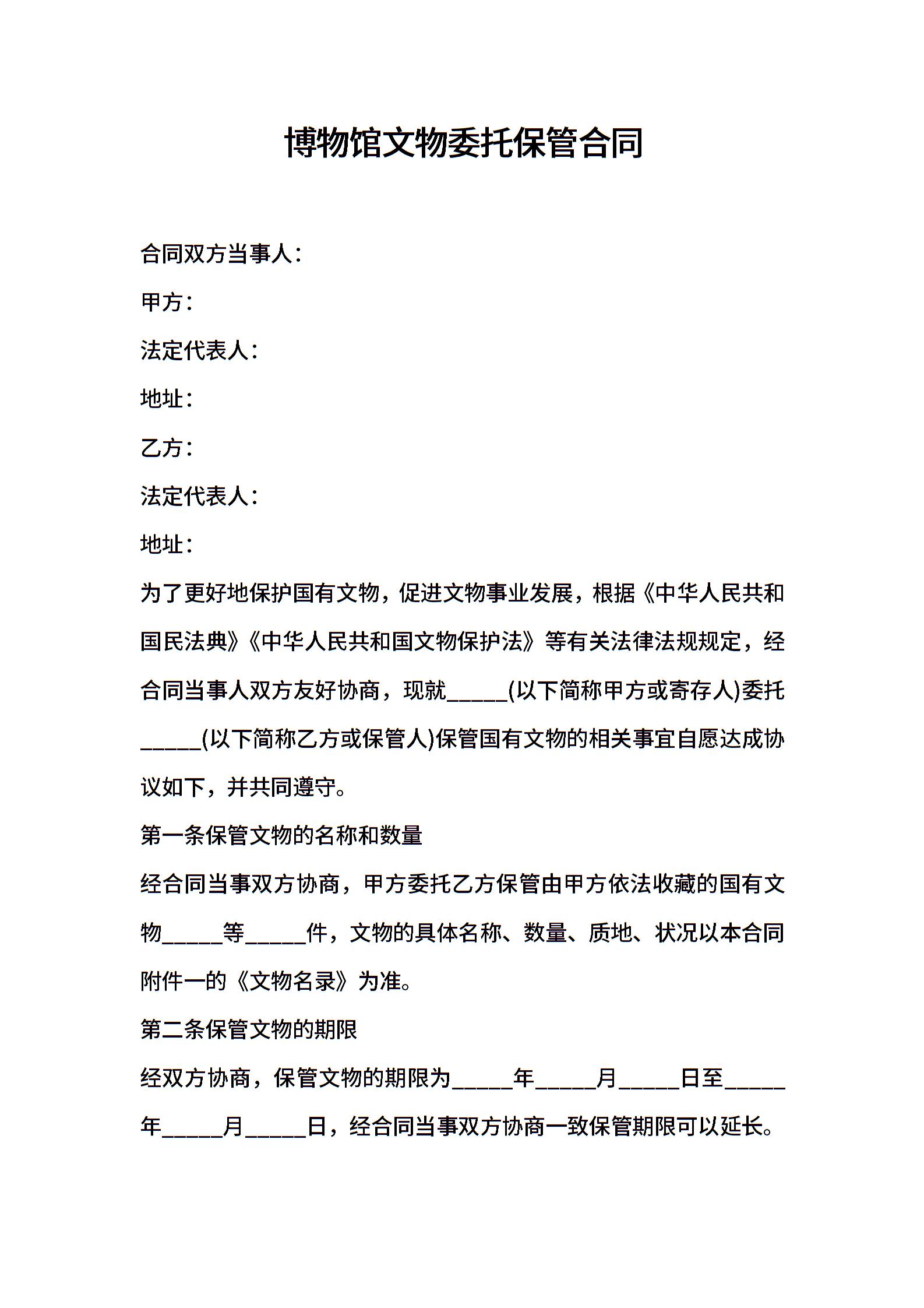 博物馆文物委托保管合同