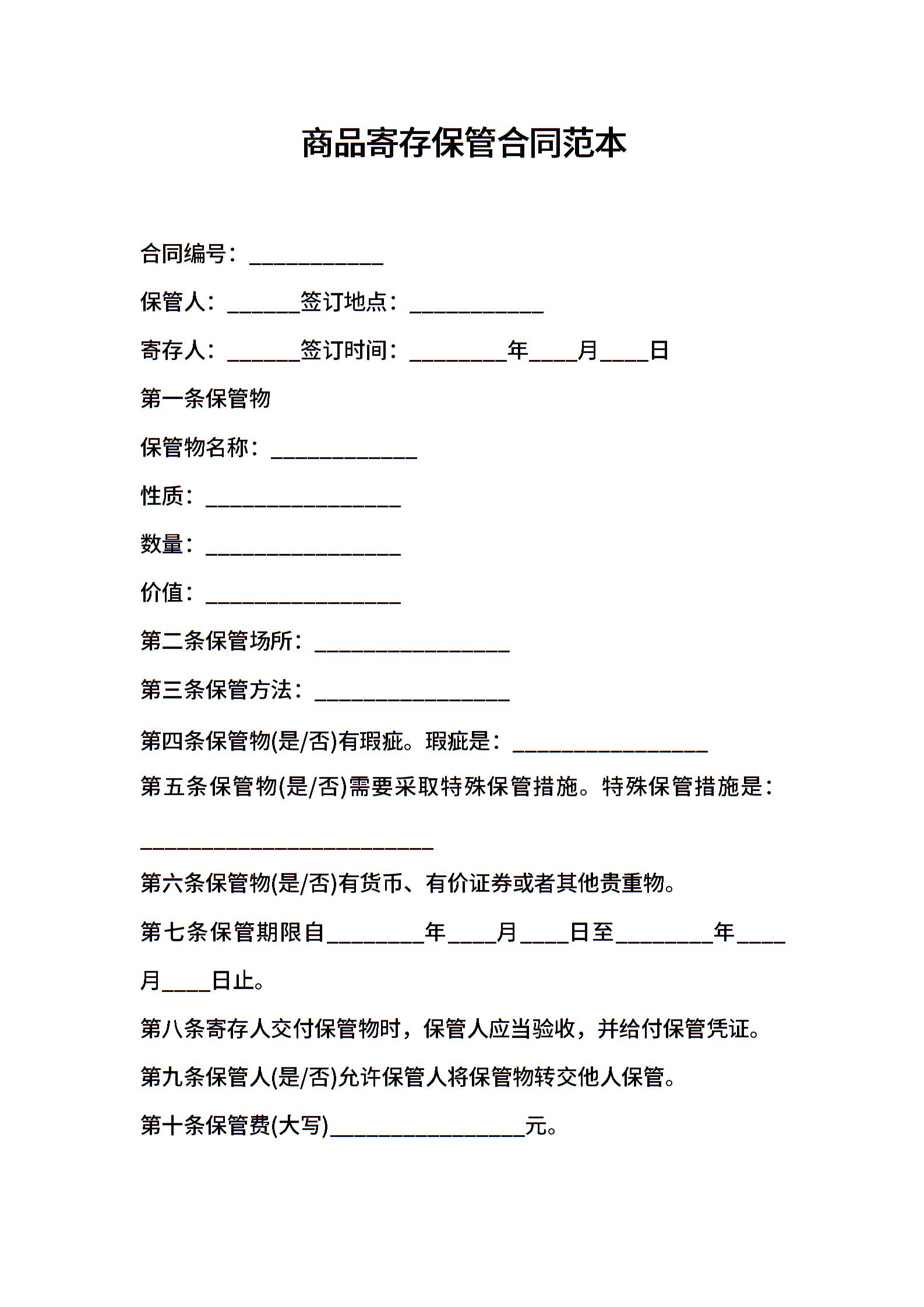 商品寄存保管合同范本