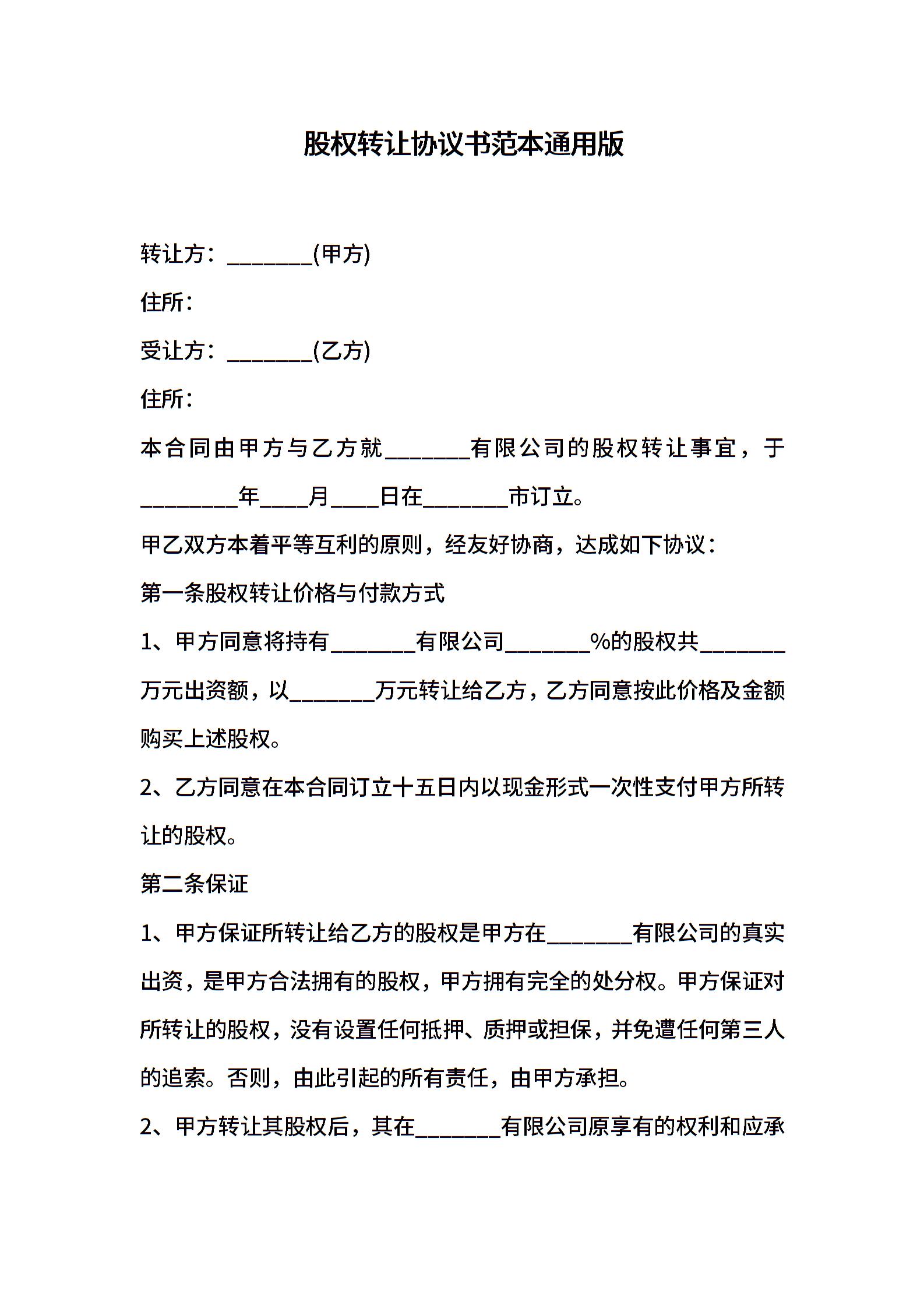 当前位置:量子办公 > 合同模板 > 股权转让协议 >