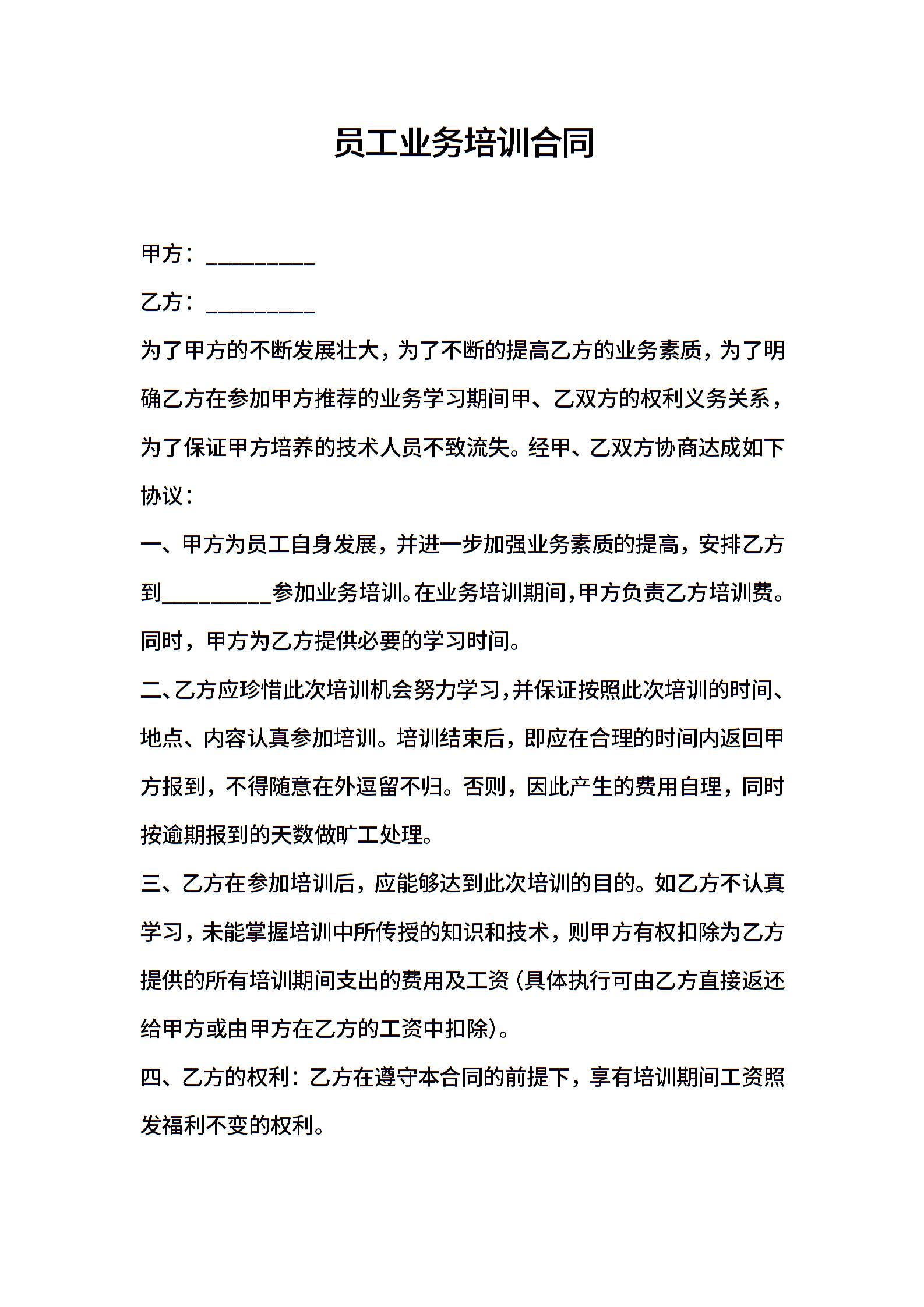 员工业务培训合同 (2)