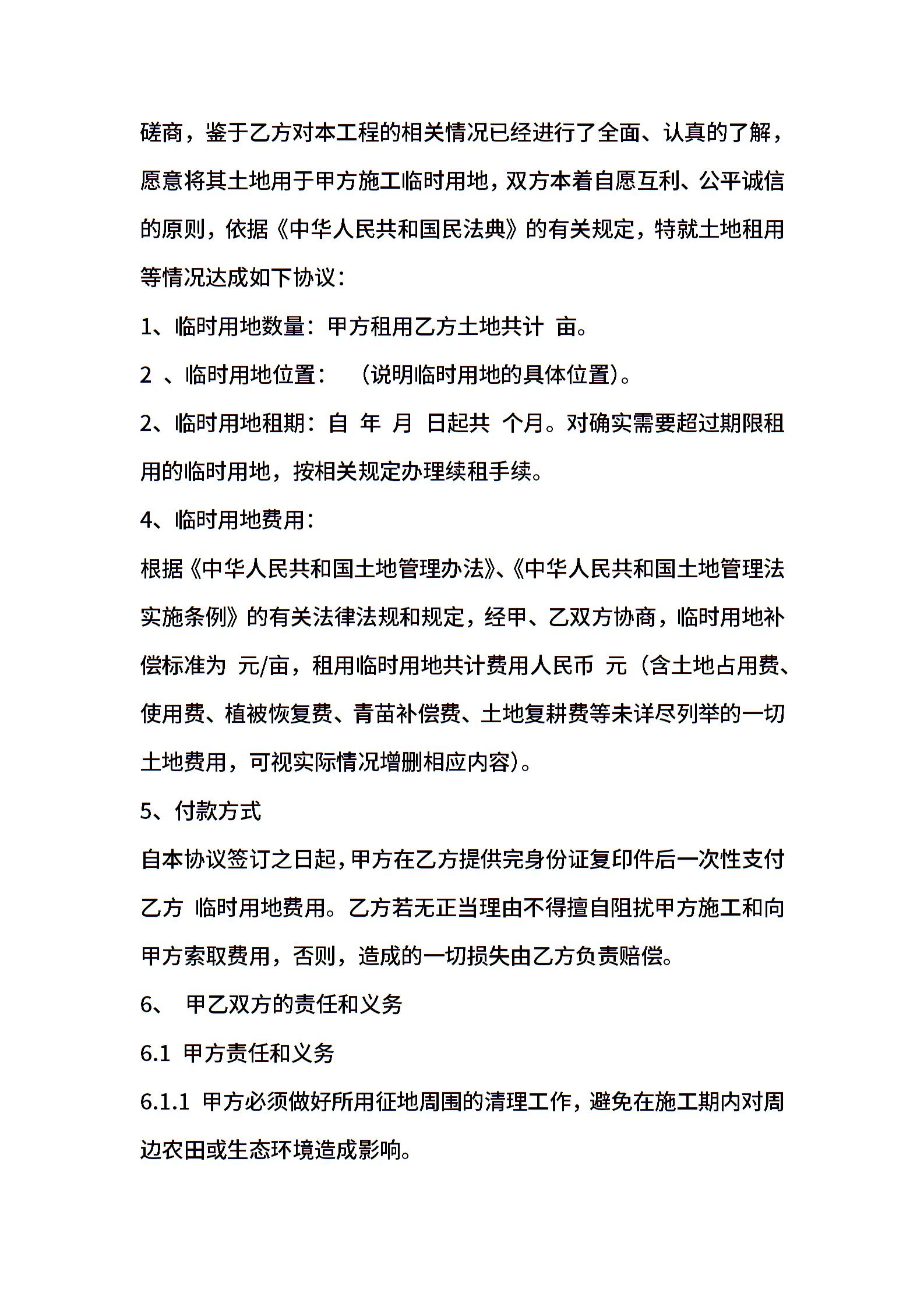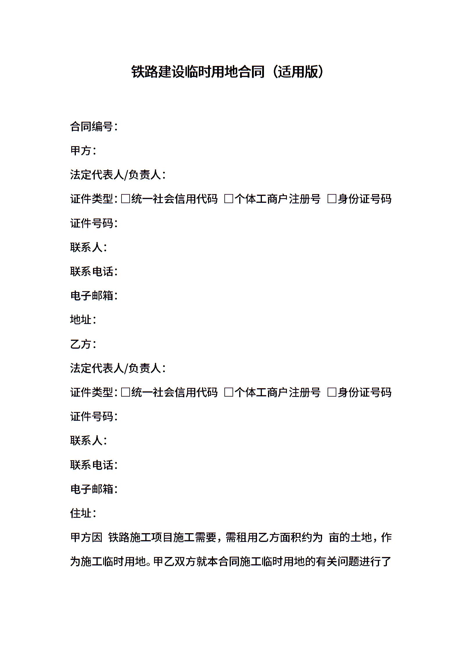 铁路建设临时用地合同(适用版)
