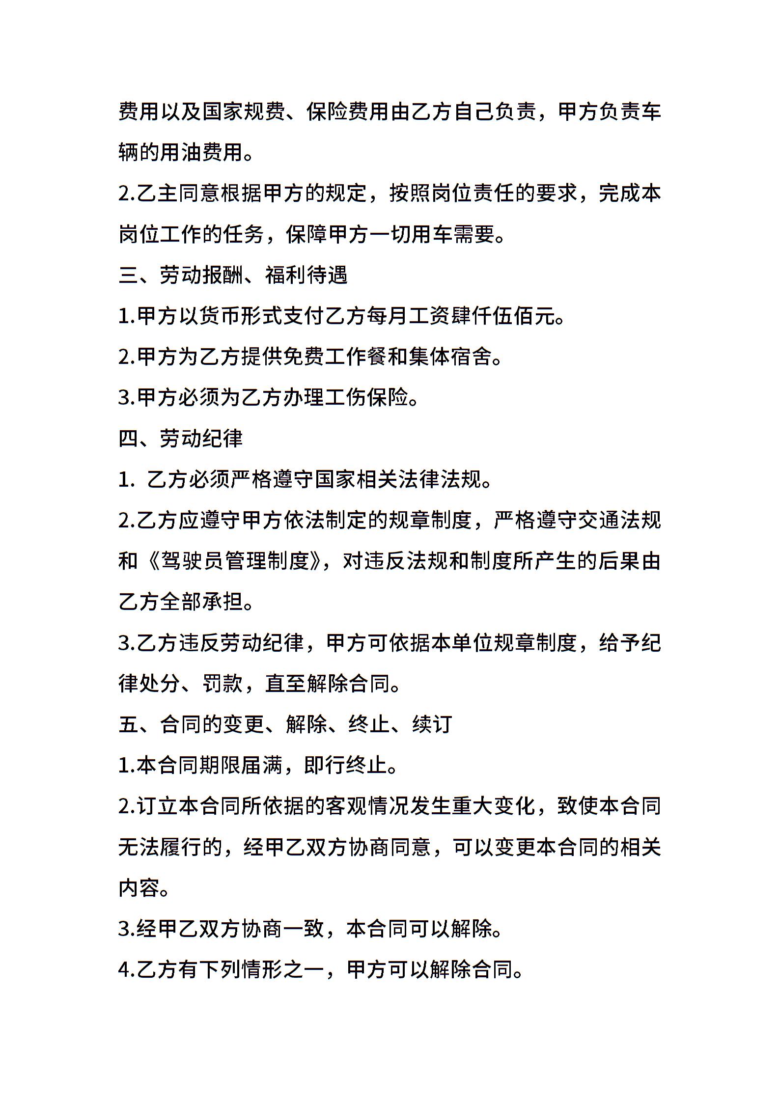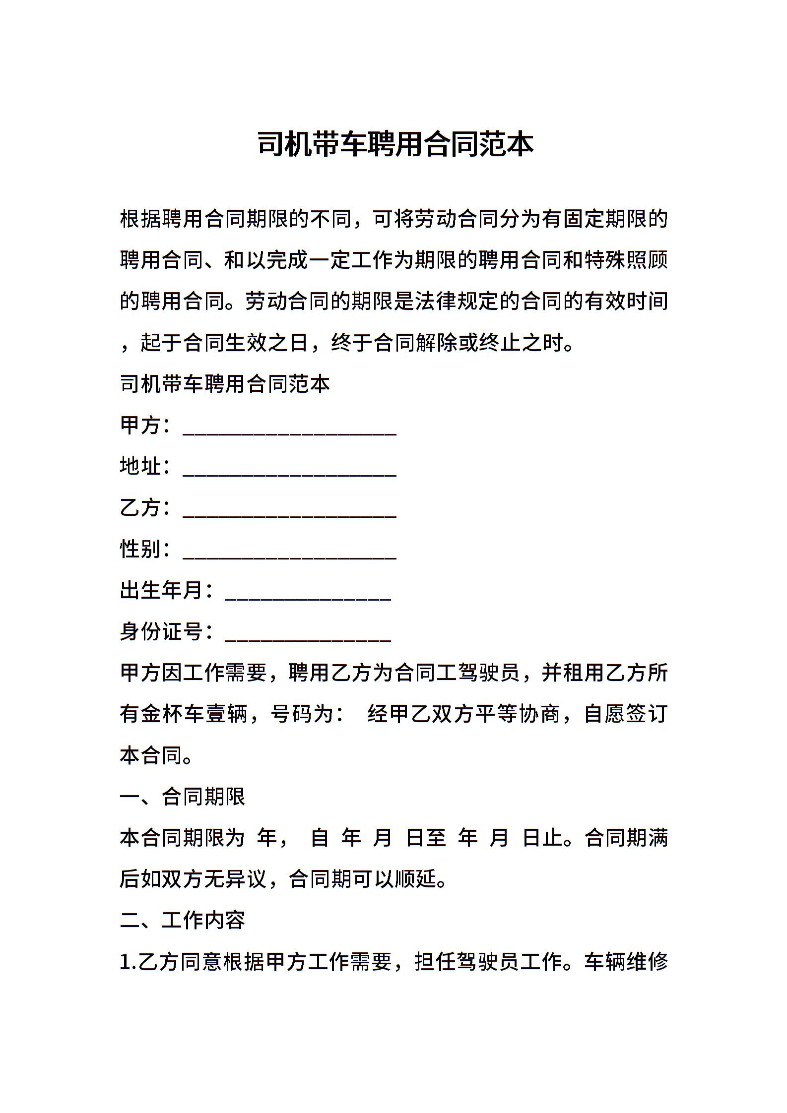 司机带车聘用合同范本
