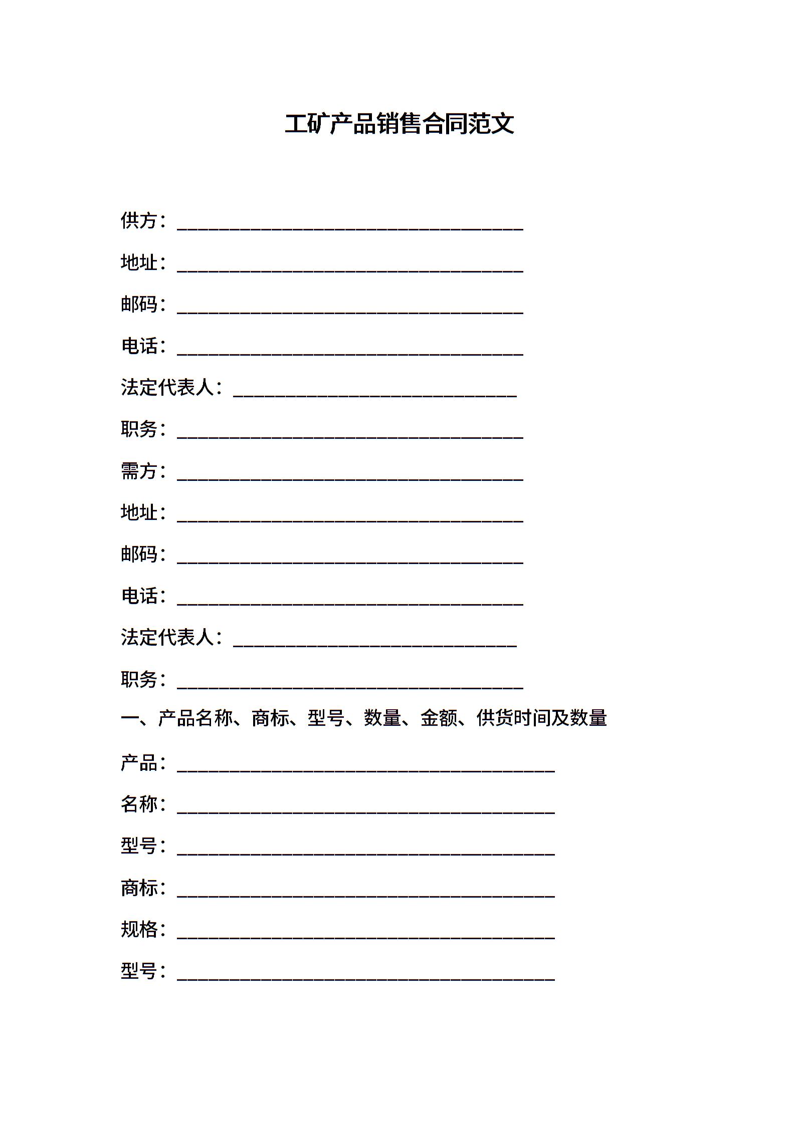 工矿产品销售合同范文
