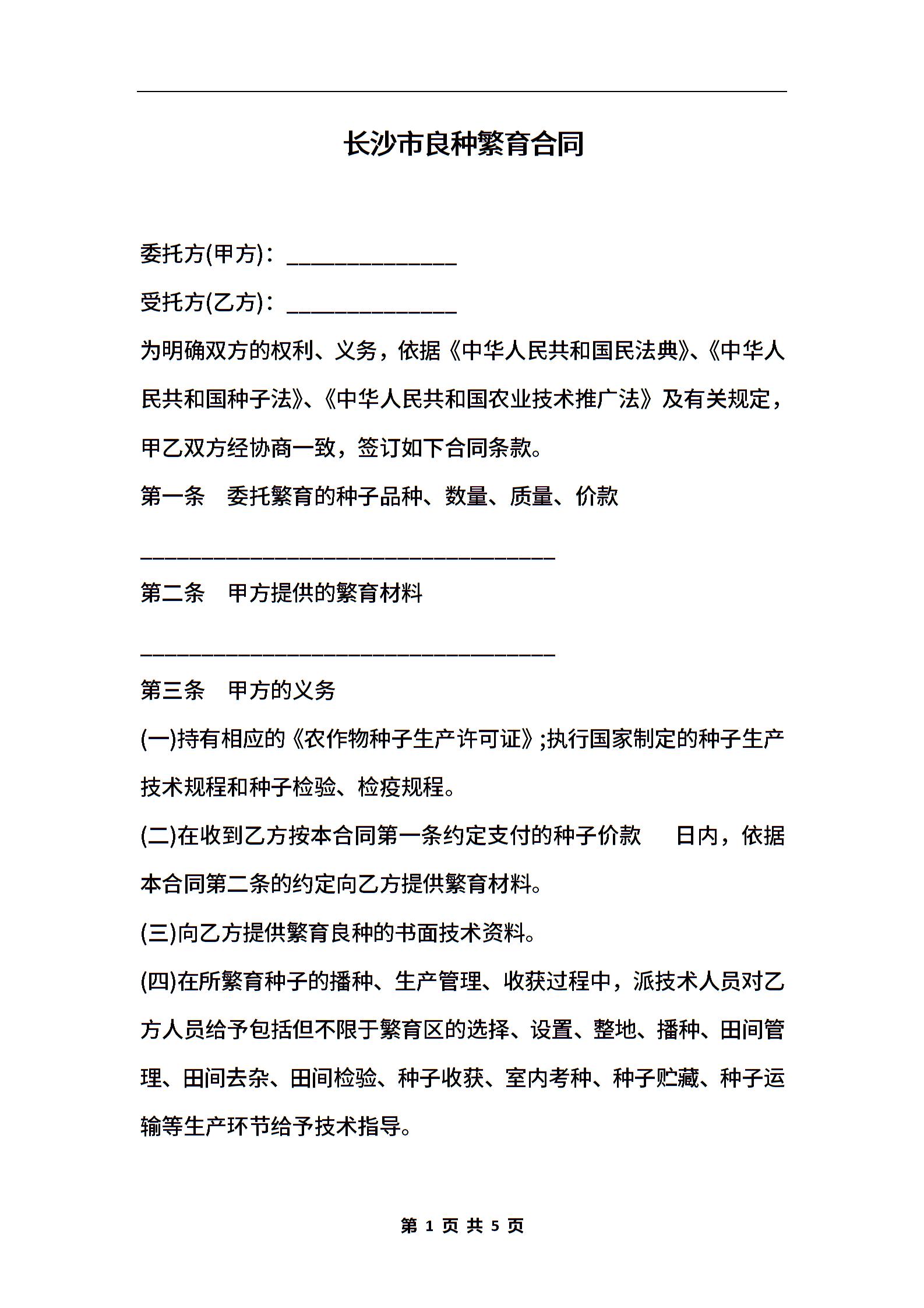 长沙市良种繁育合同