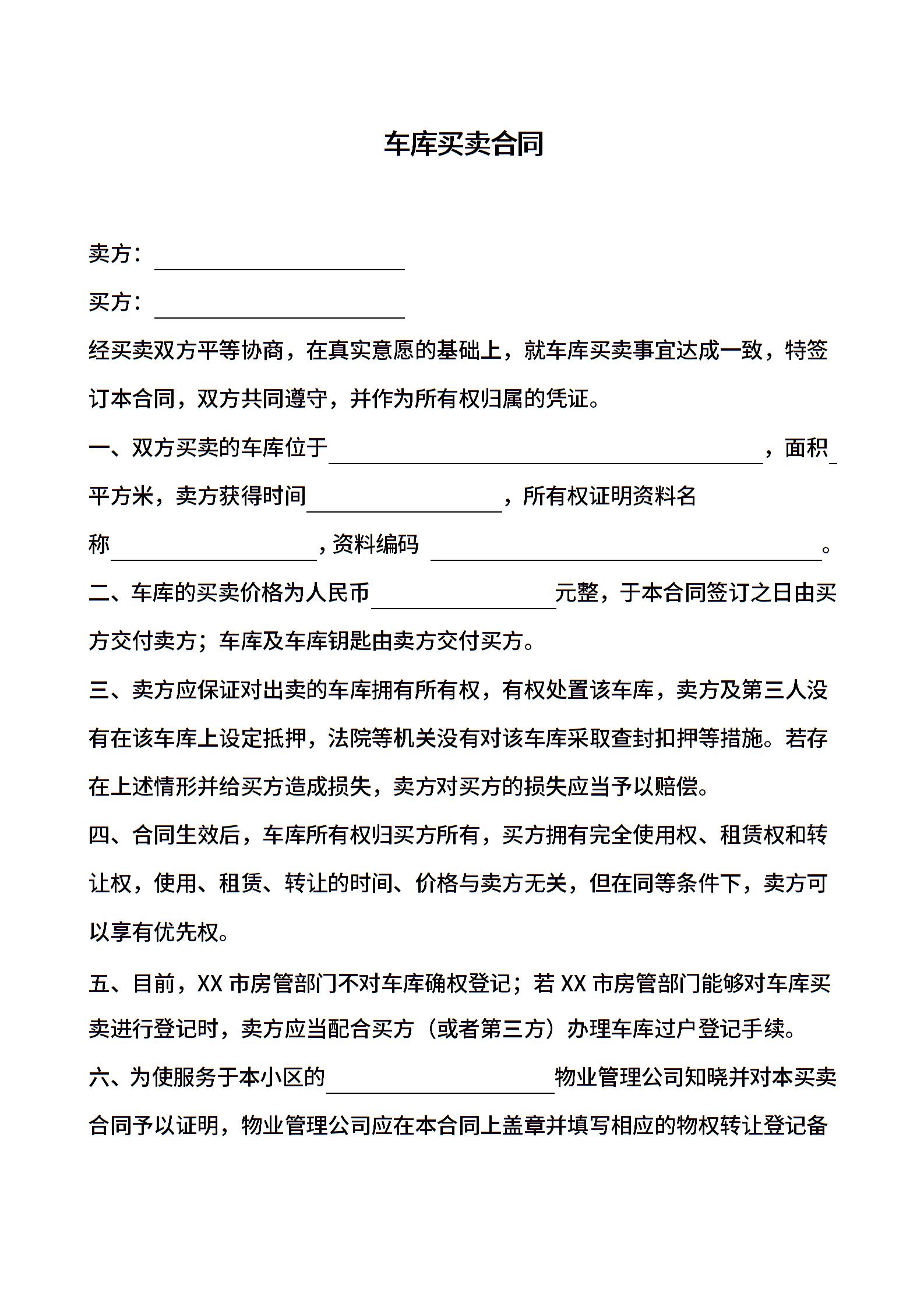车库买卖合同