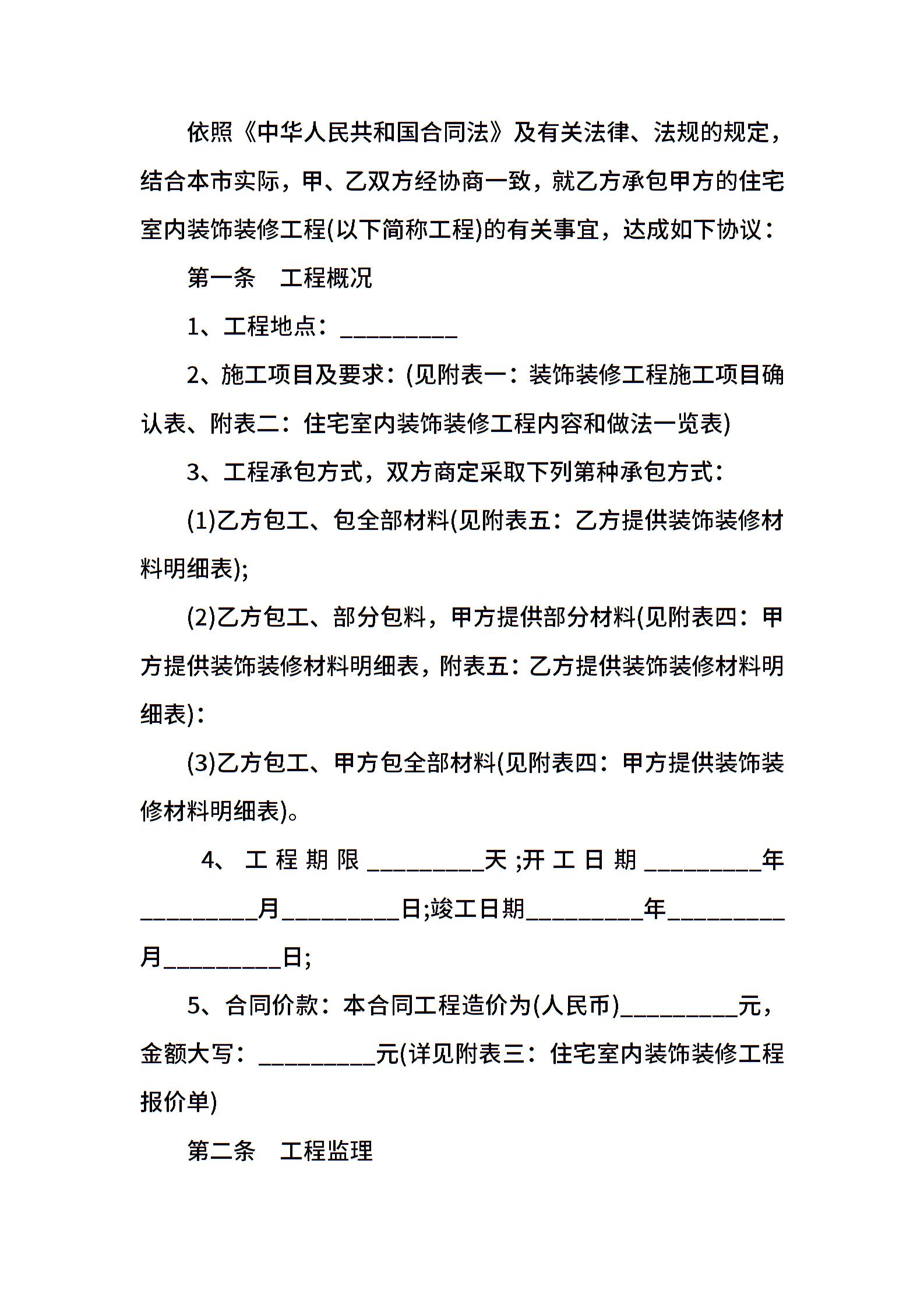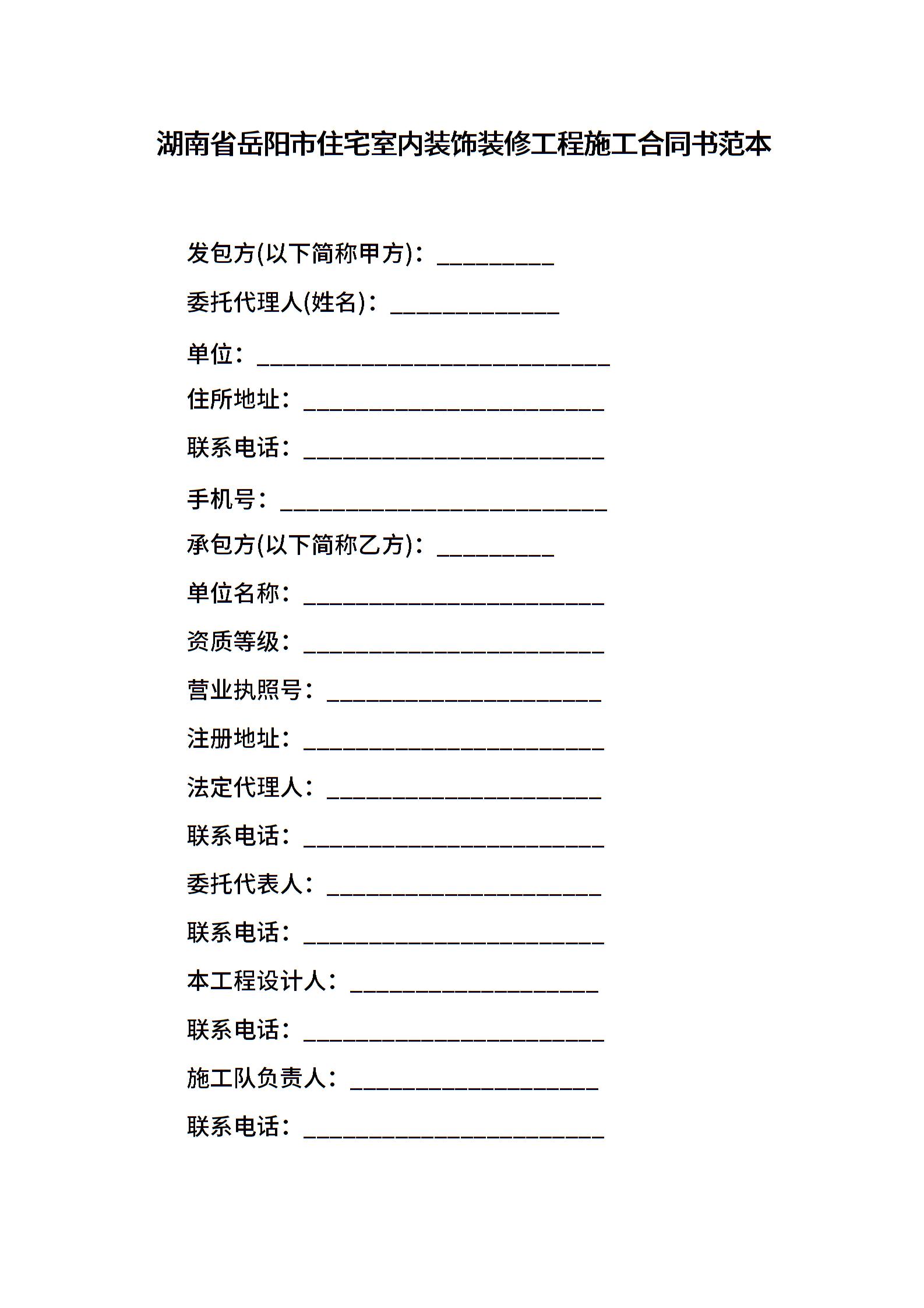 湖南省岳阳市住宅室内装饰装修工程施工合同书范本