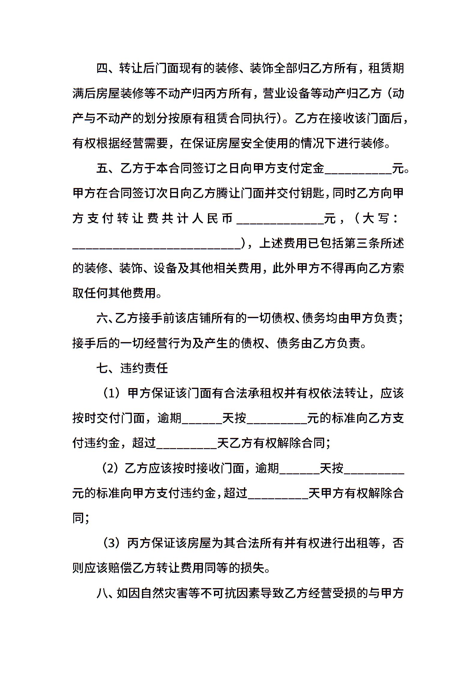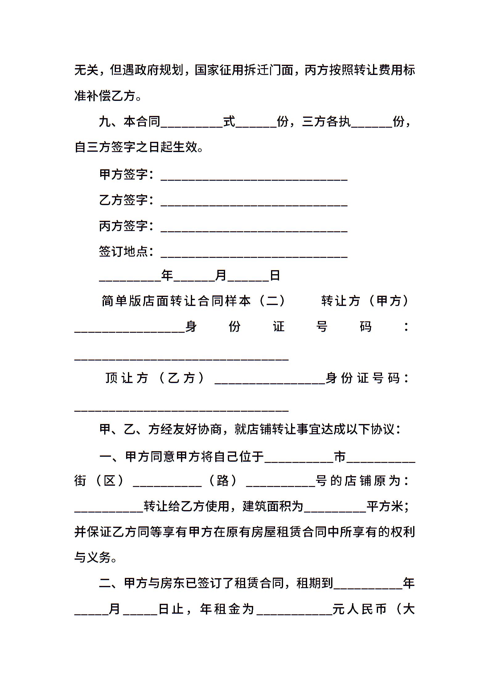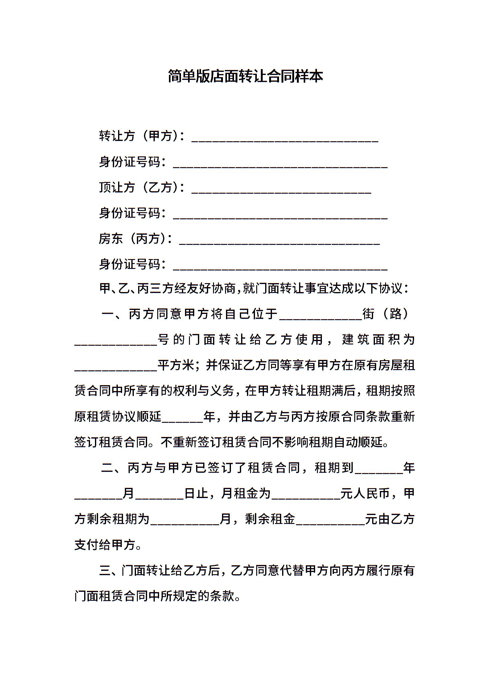 简单版店面转让合同样本