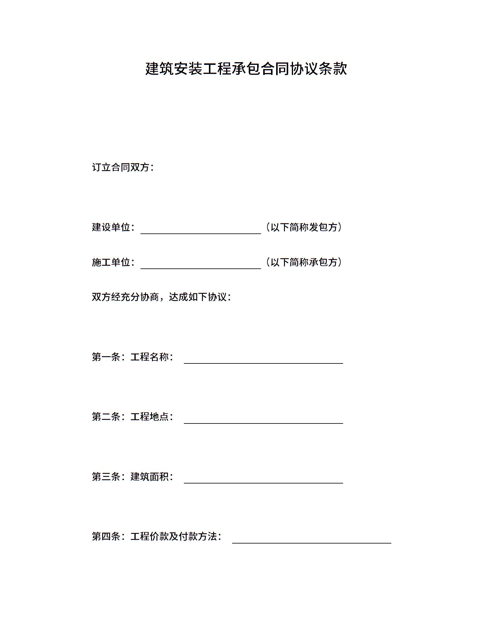 建筑安装工程承包合同协议条款 (2)