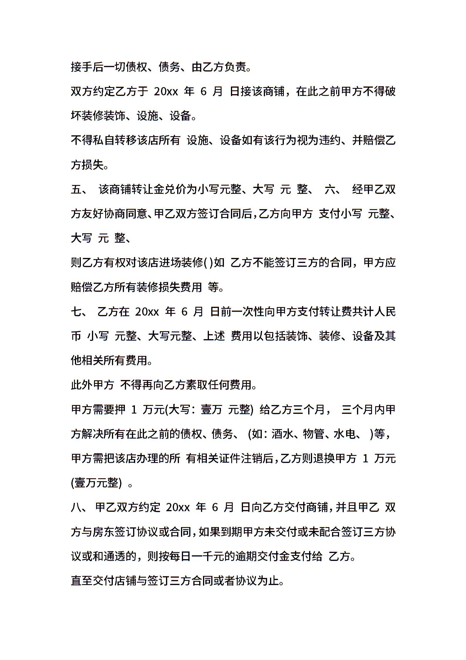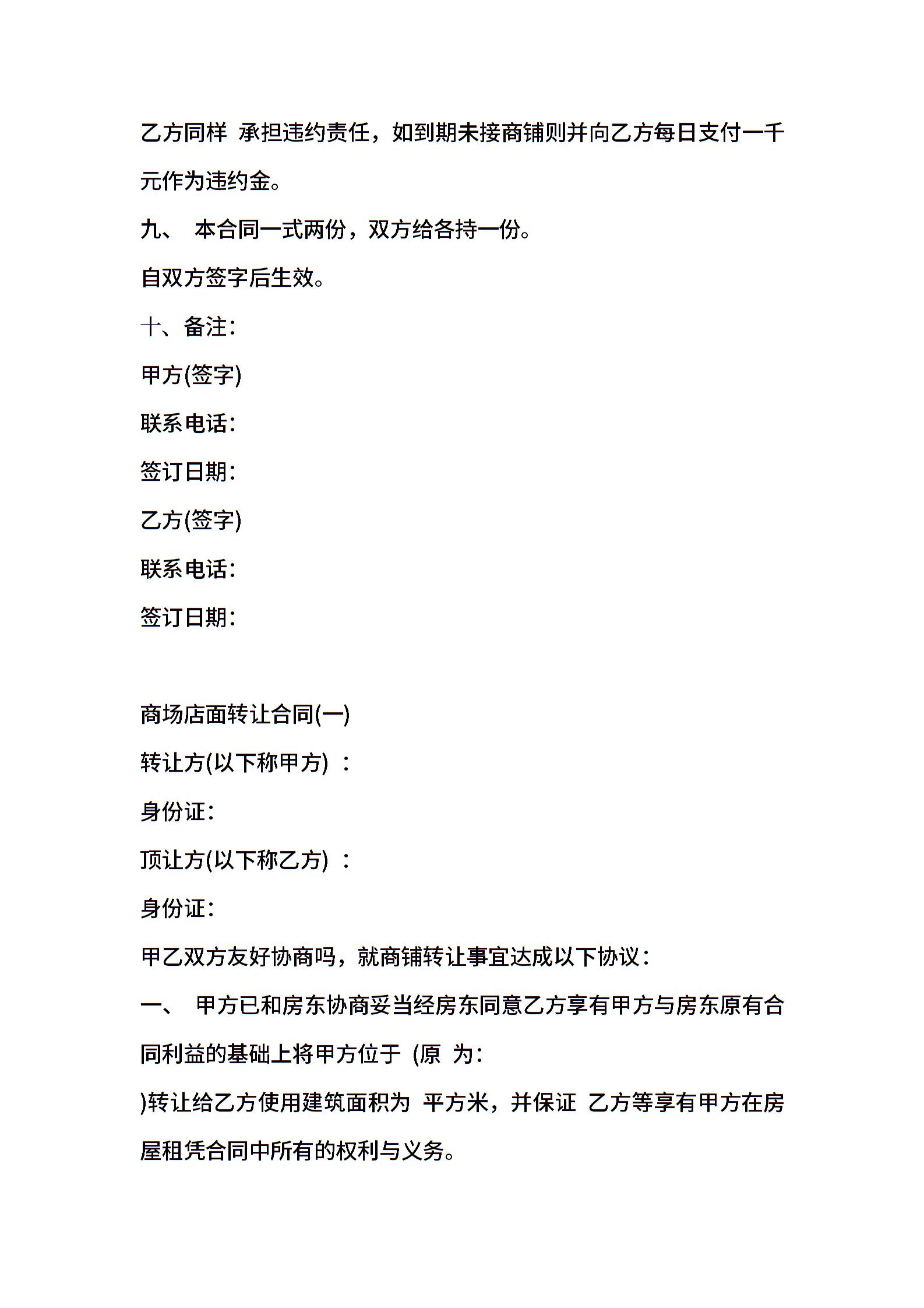 商场店面转让合同