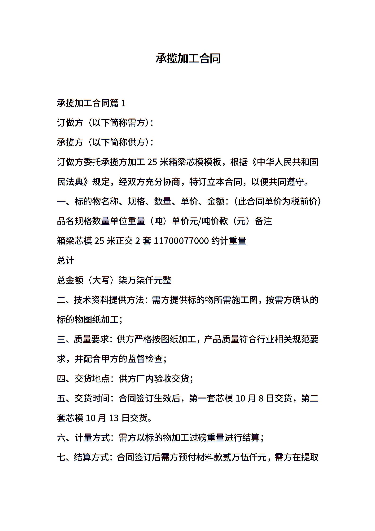 当前位置:量子办公 > 合同模板 > 加工合同 >