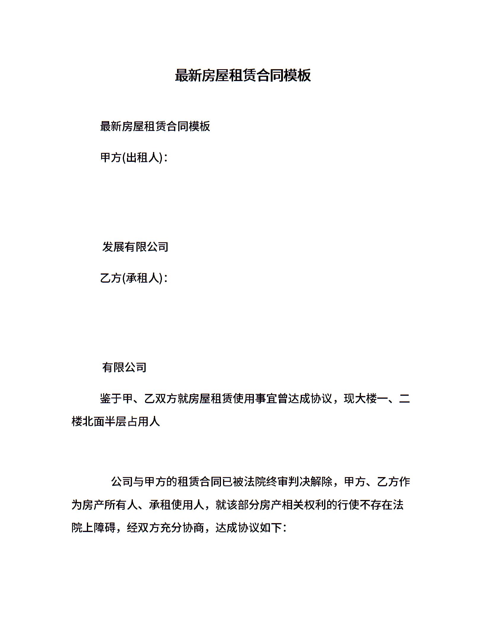 最新房屋租赁合同模板