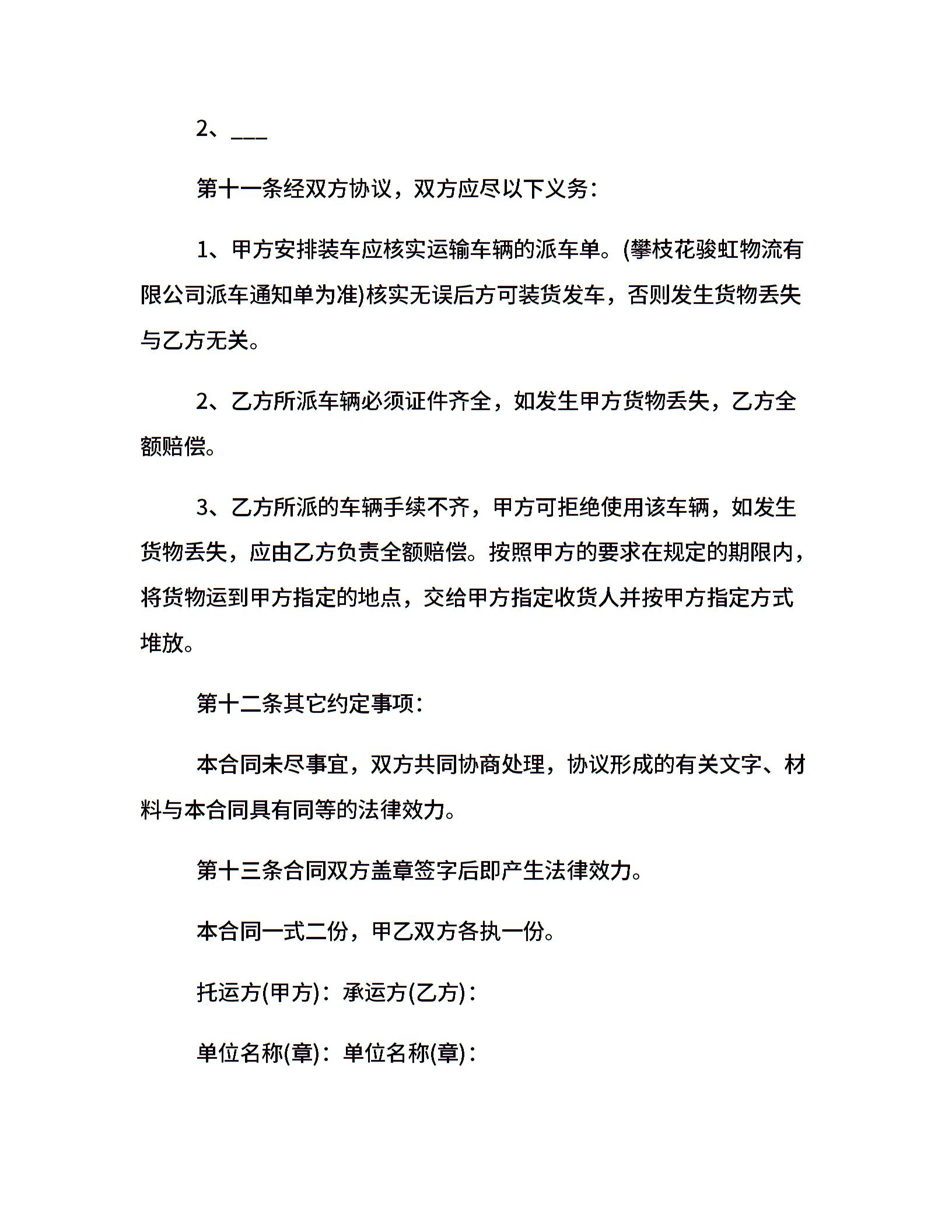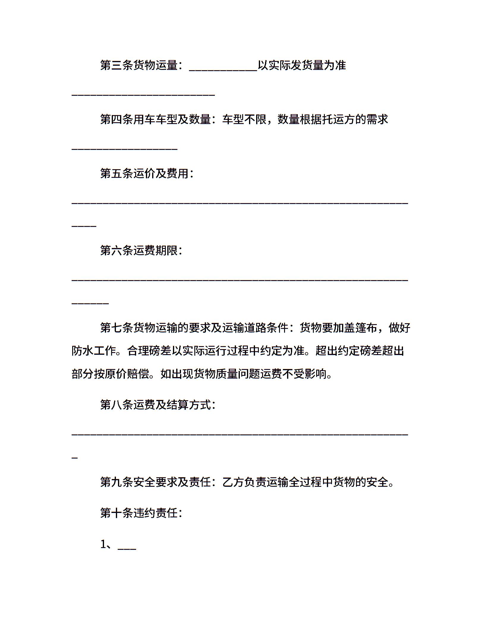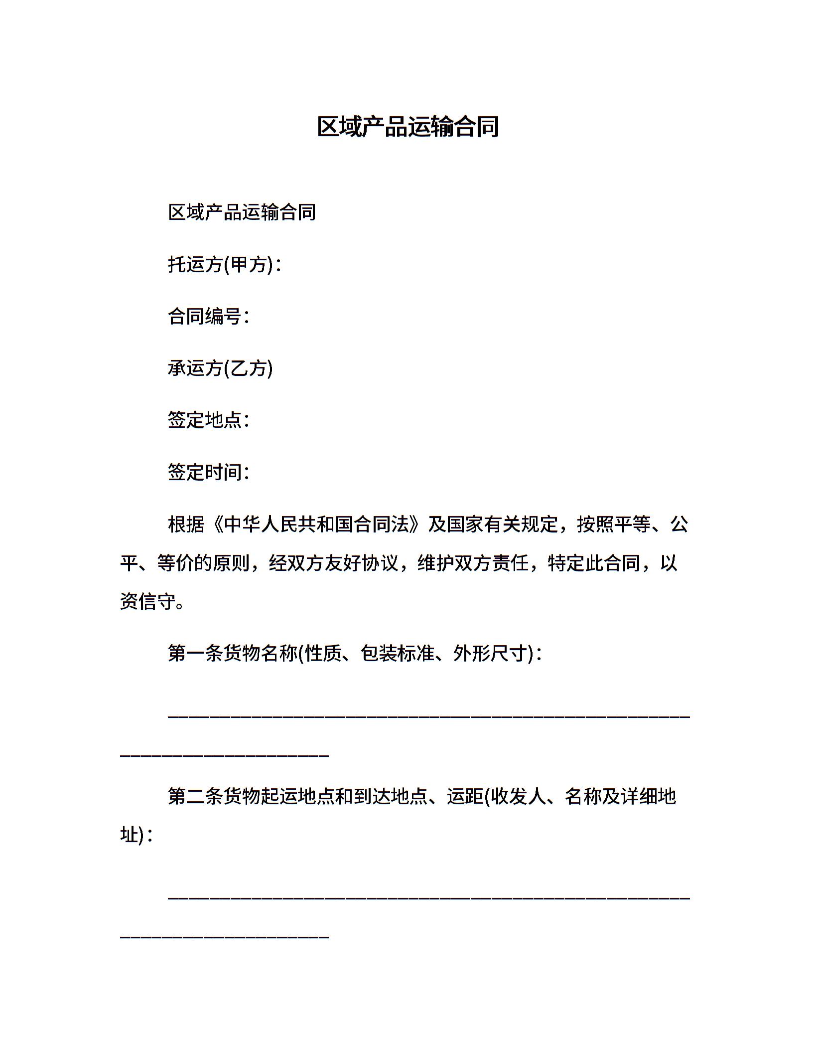 区域产品运输合同