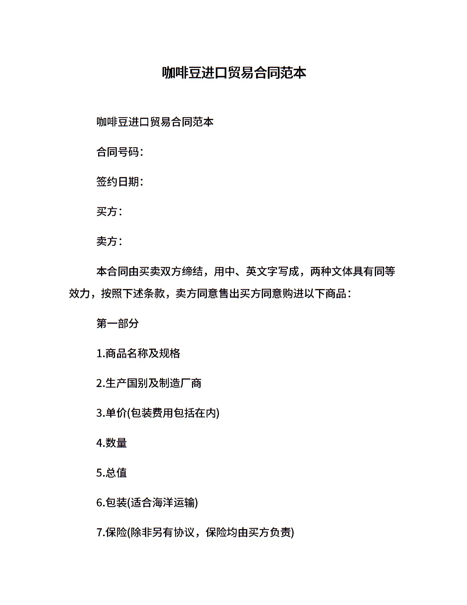 咖啡豆进口贸易合同范本