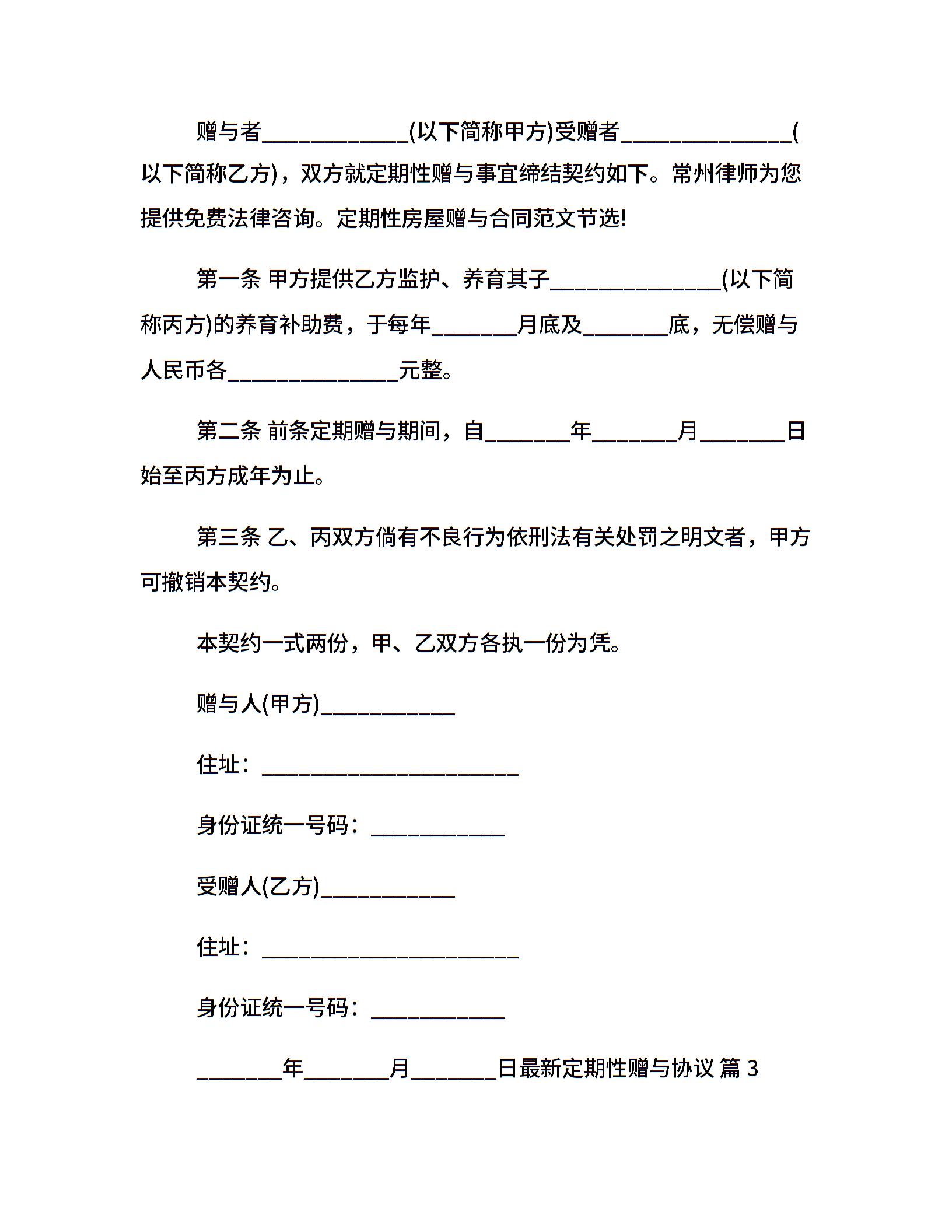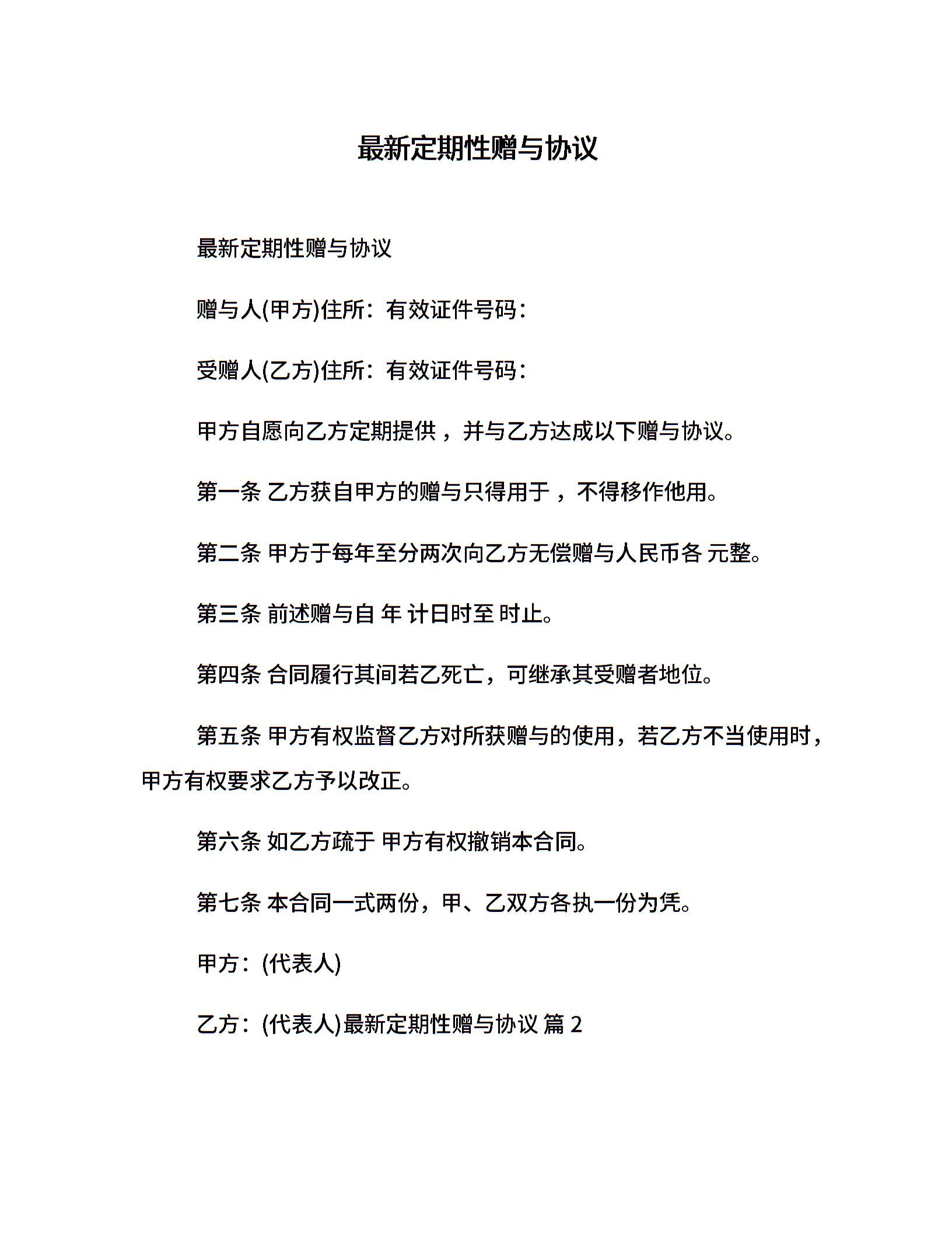 最新定期性赠与协议