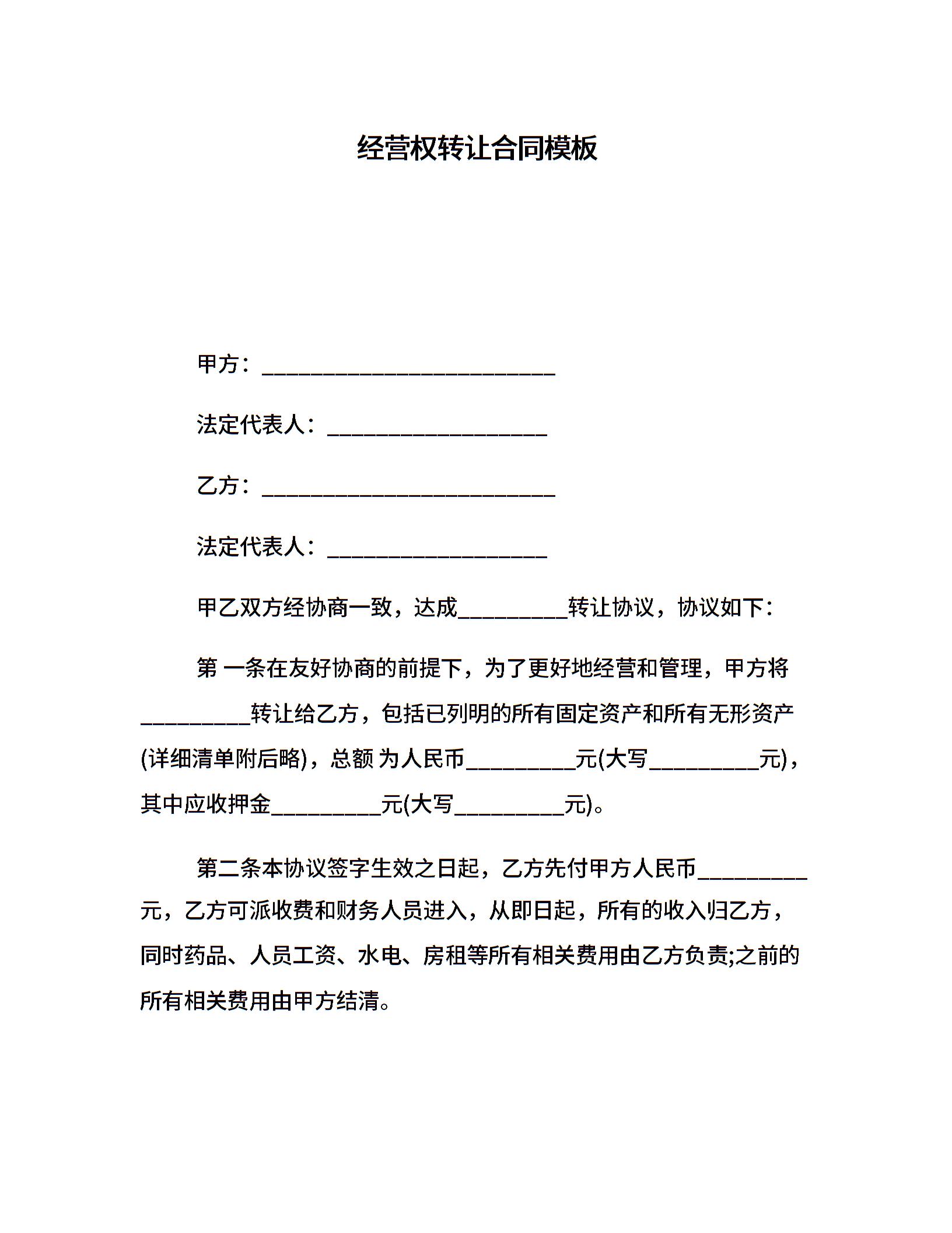 经营权转让合同模板