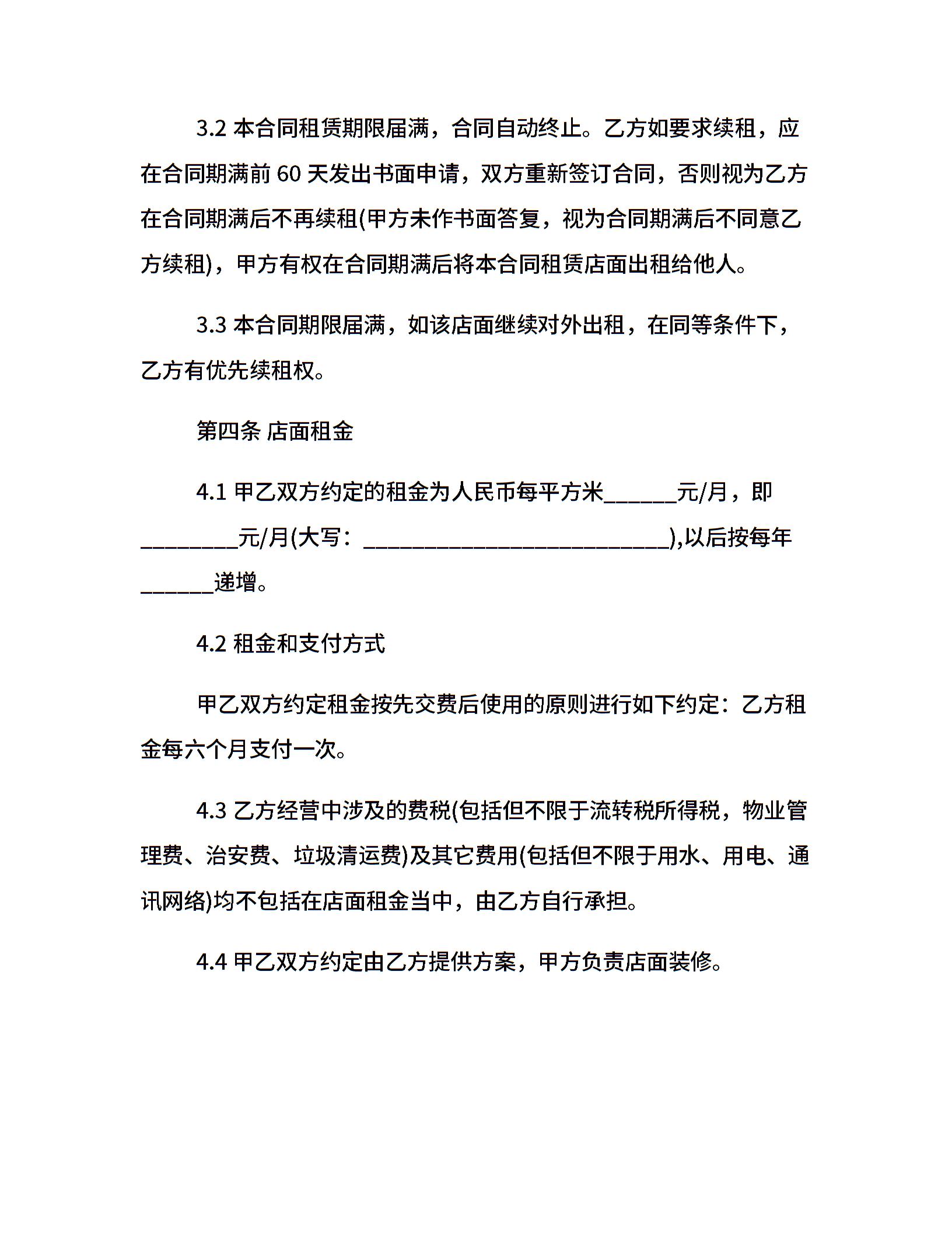 20xx最新个人店铺出租合同
