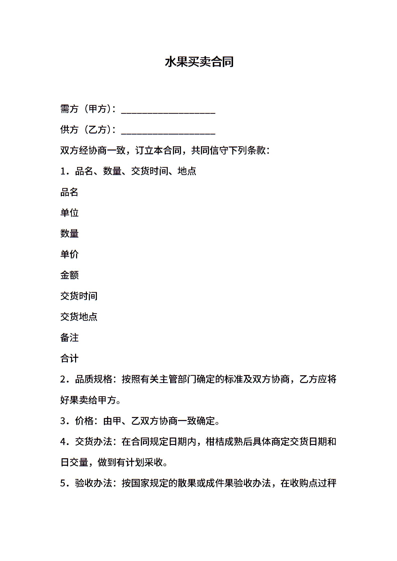 水果买卖合同