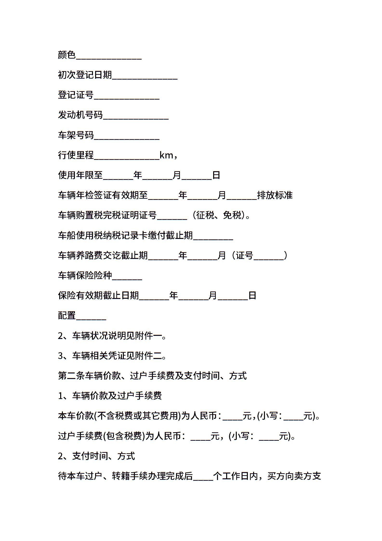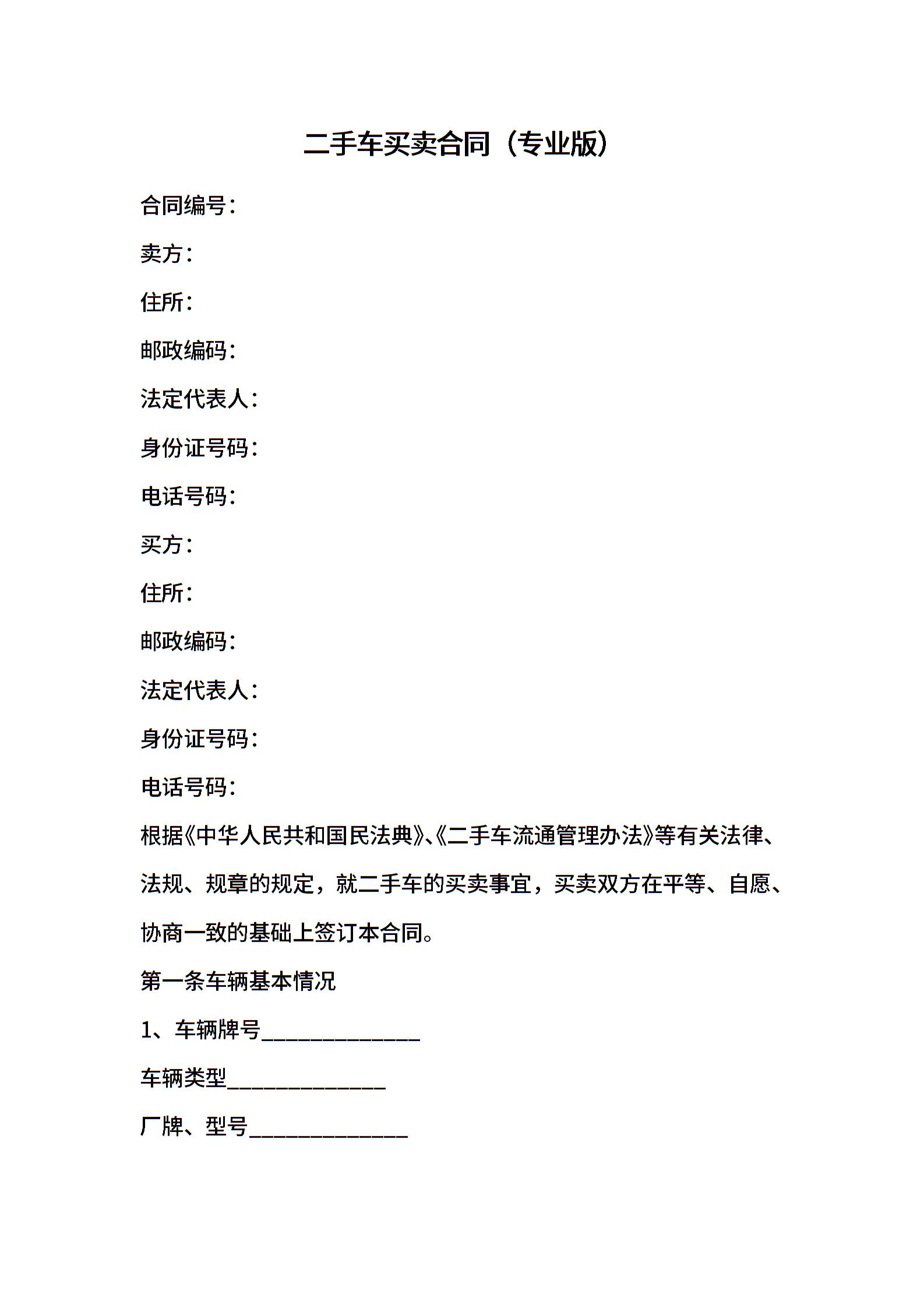 二手车买卖合同(专业版)