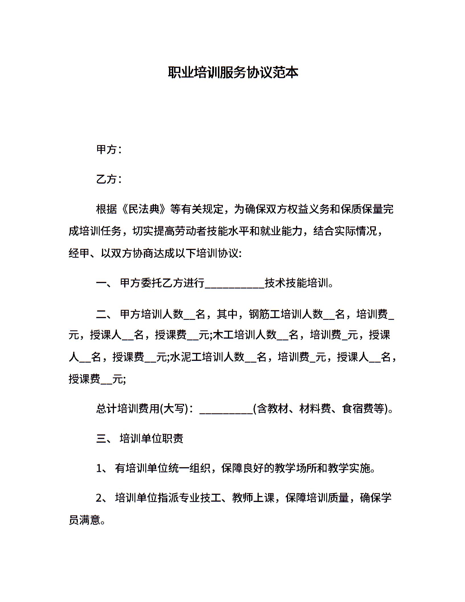 职业培训服务协议范本