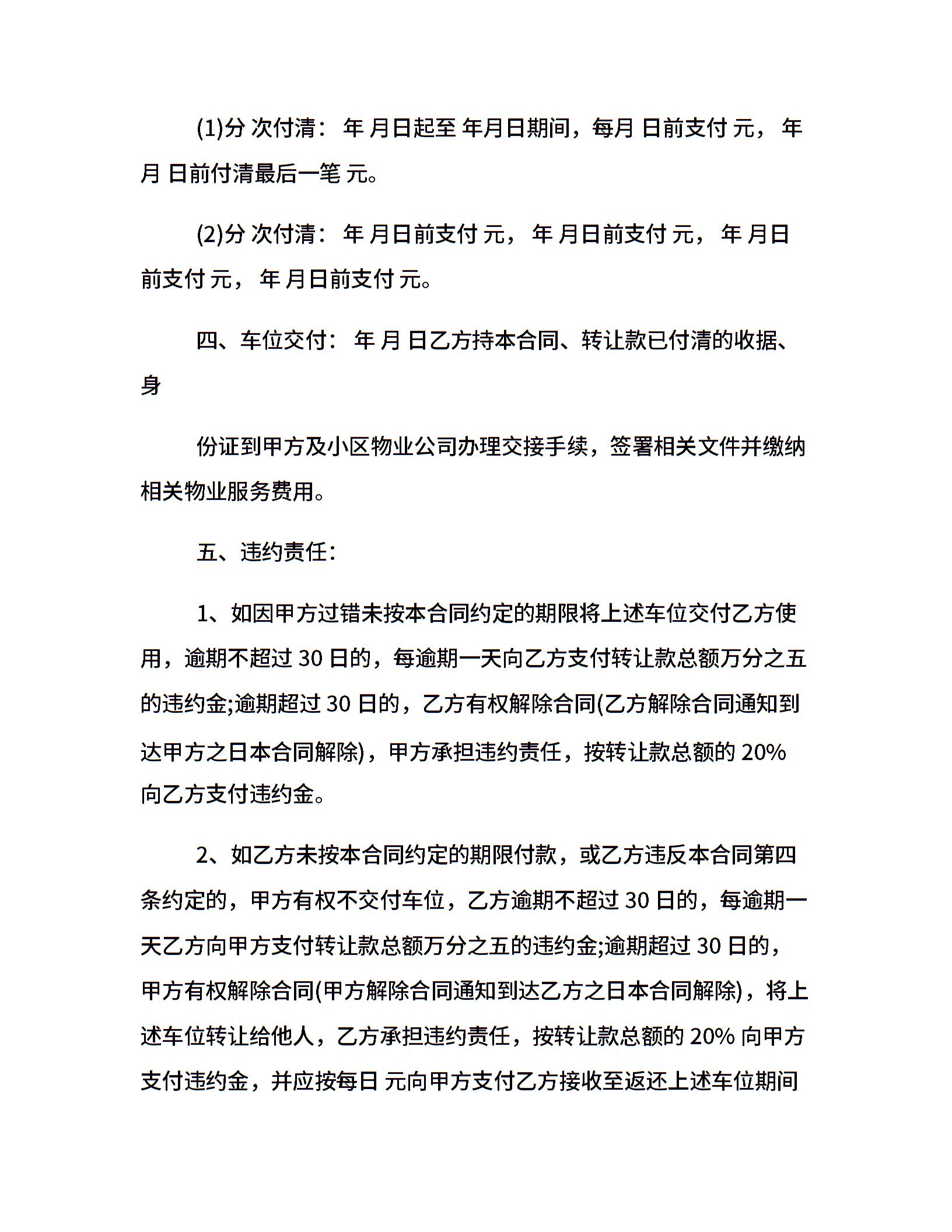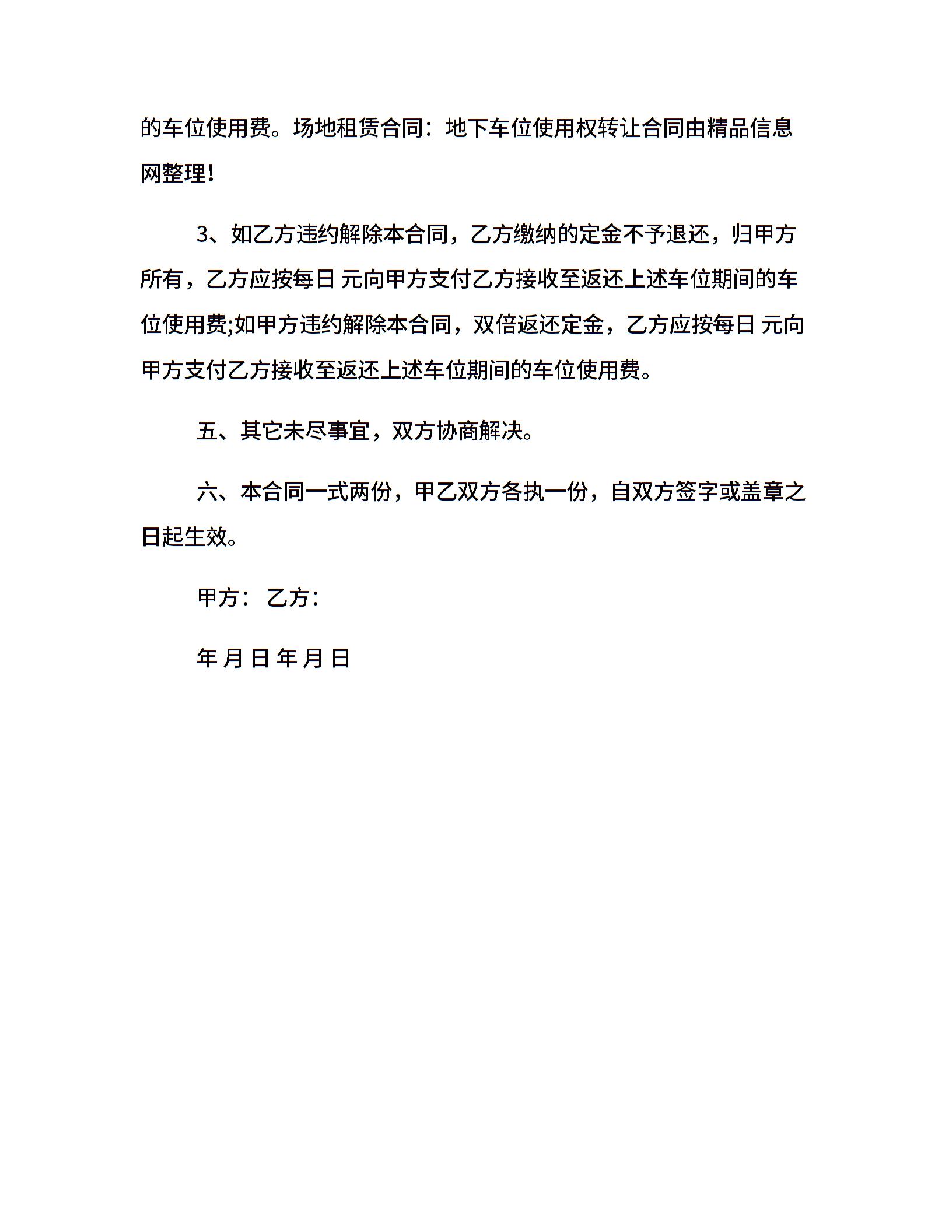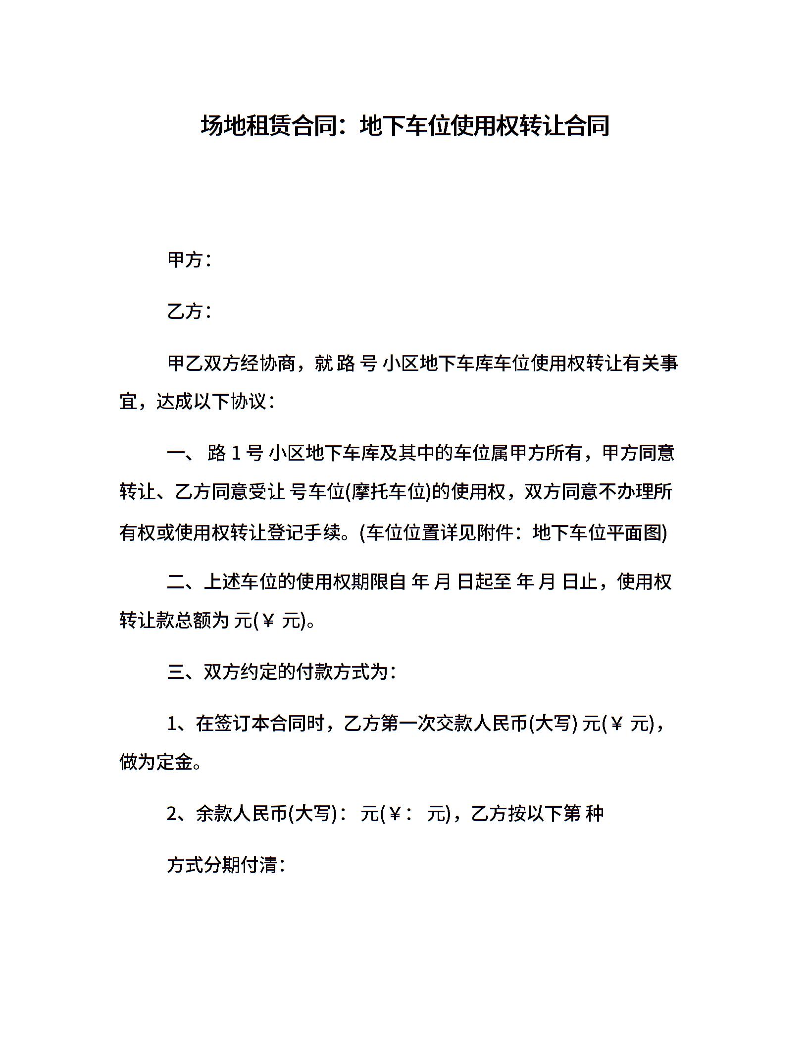 场地租赁合同:地下车位使用权转让合同