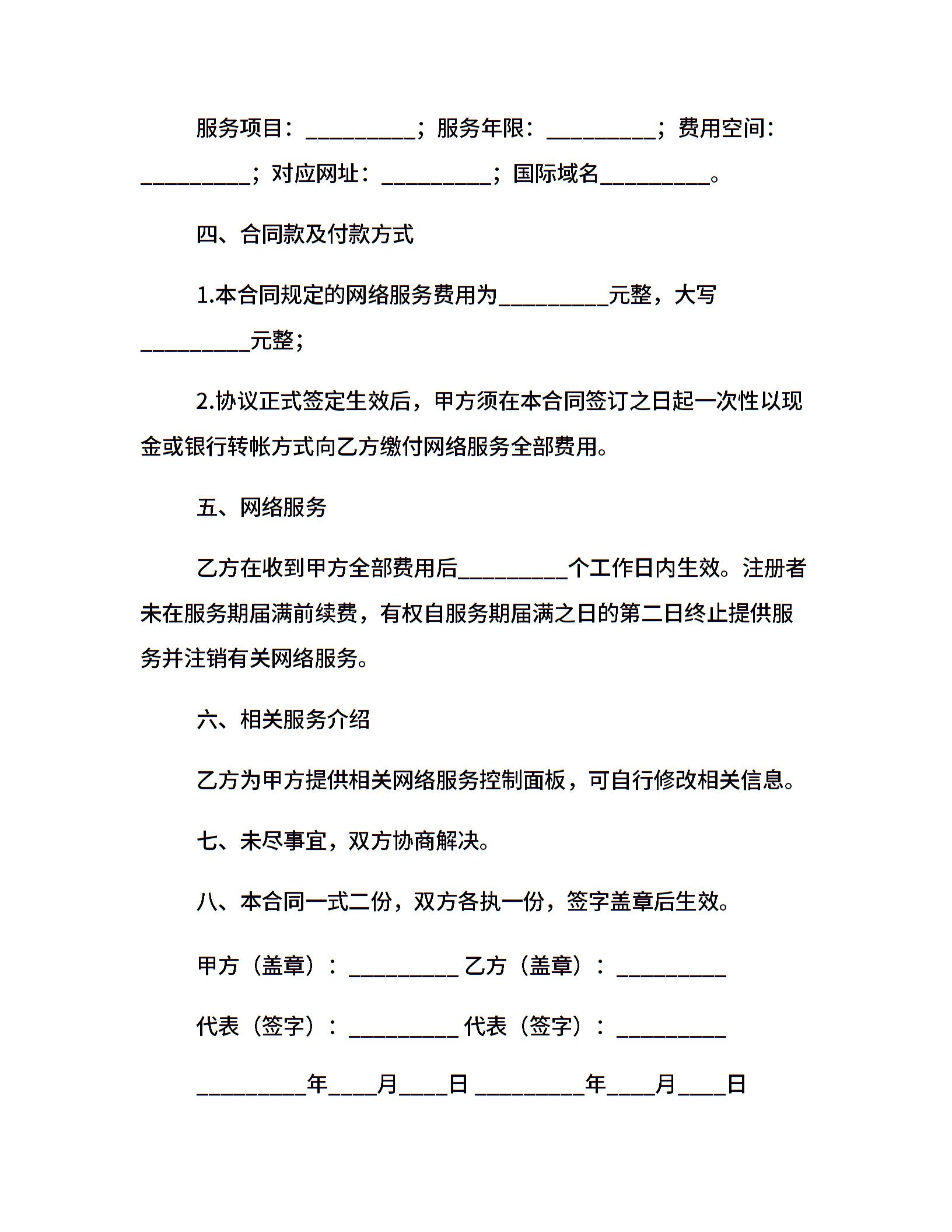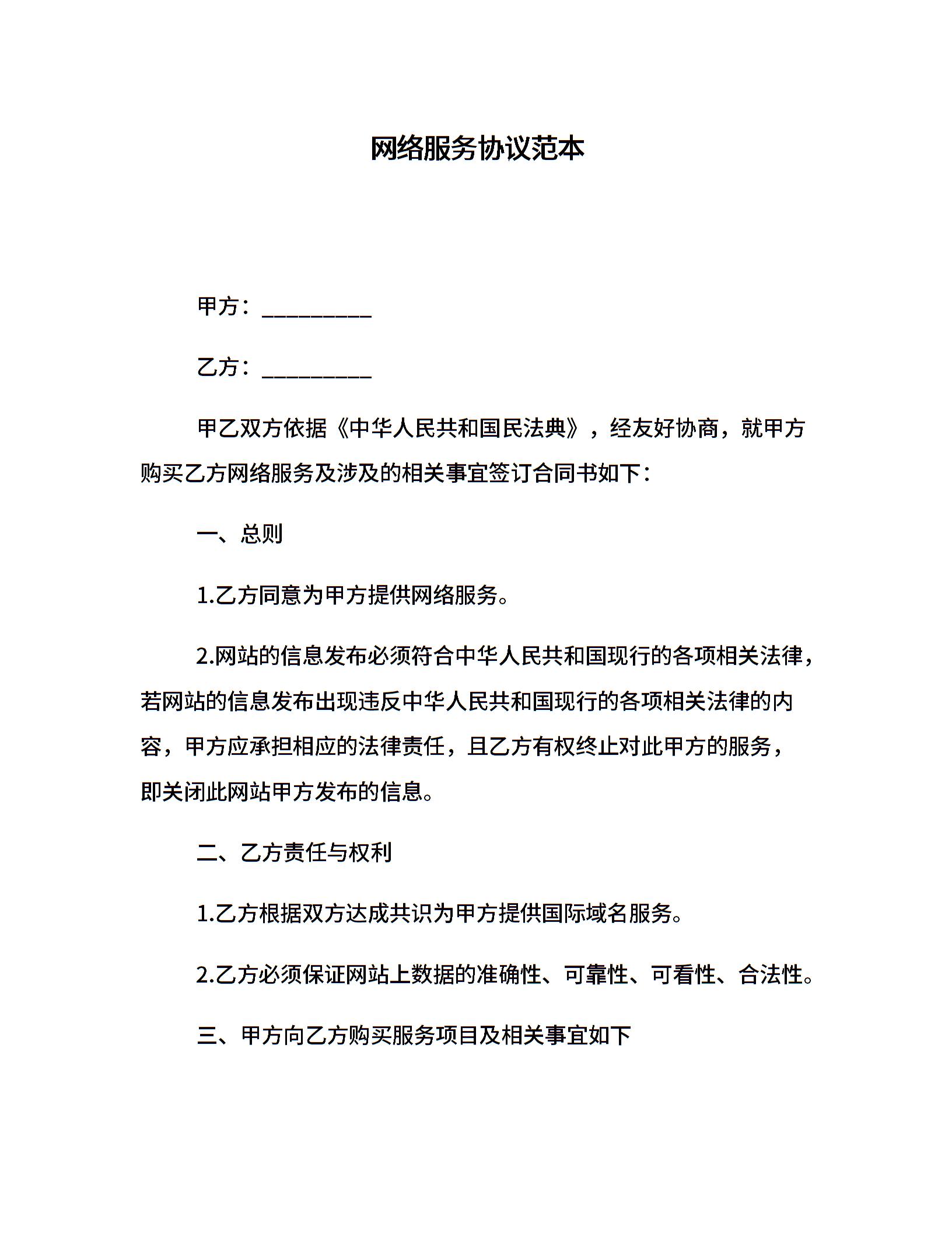 网络服务协议范本