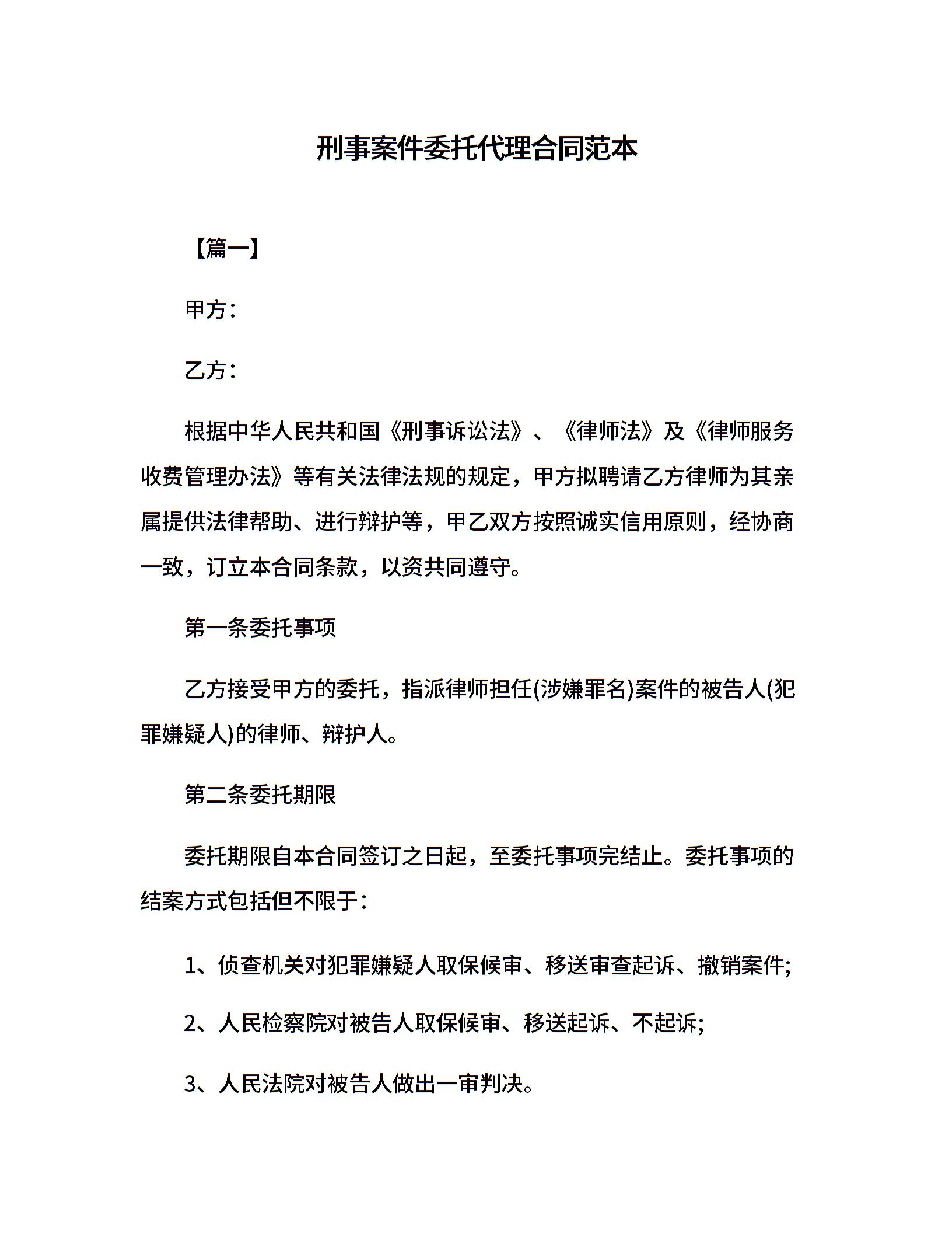 刑事案件委托代理合同范本