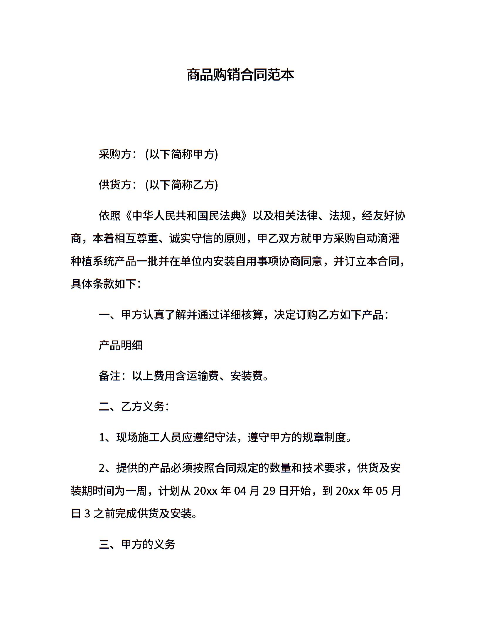 商品购销合同范本