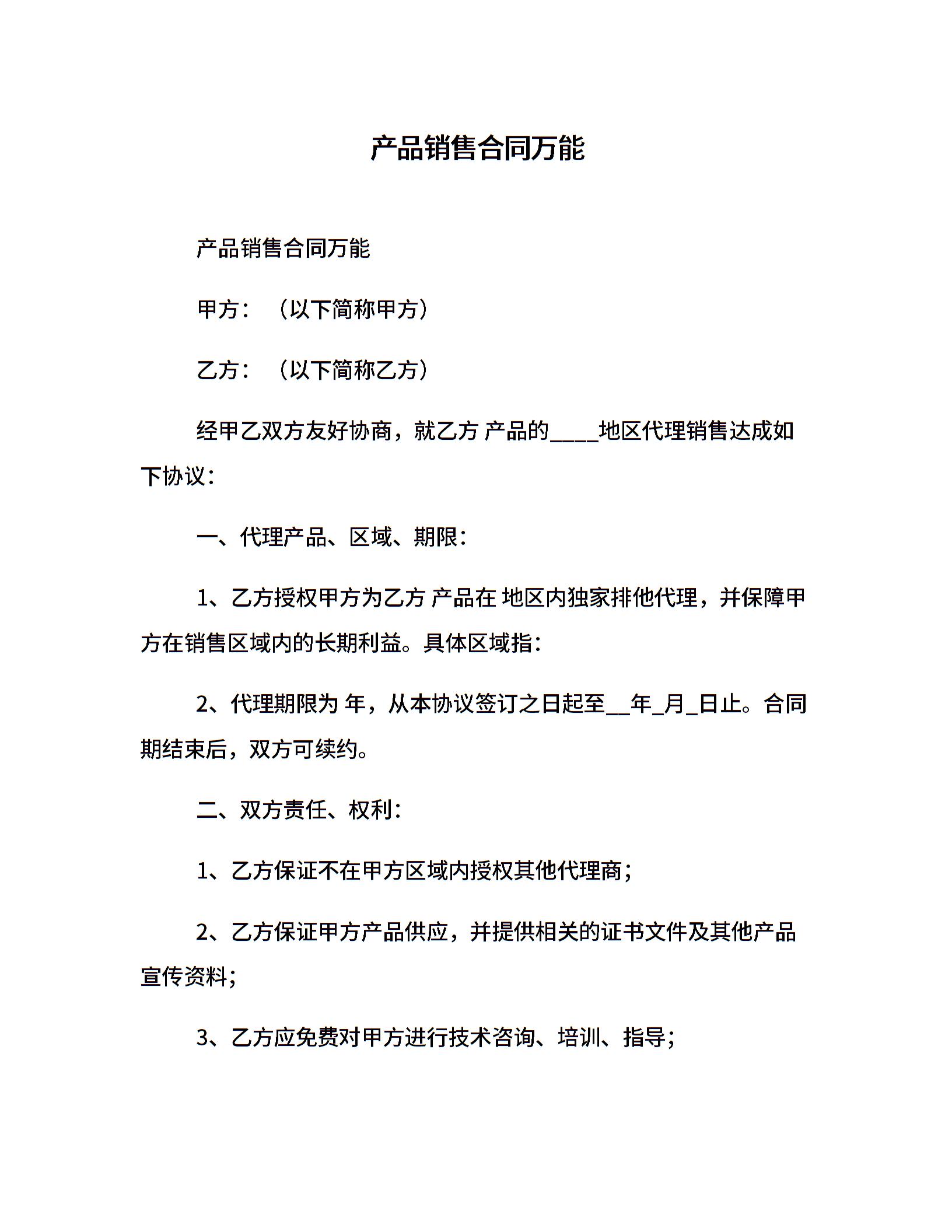 产品销售合同万能