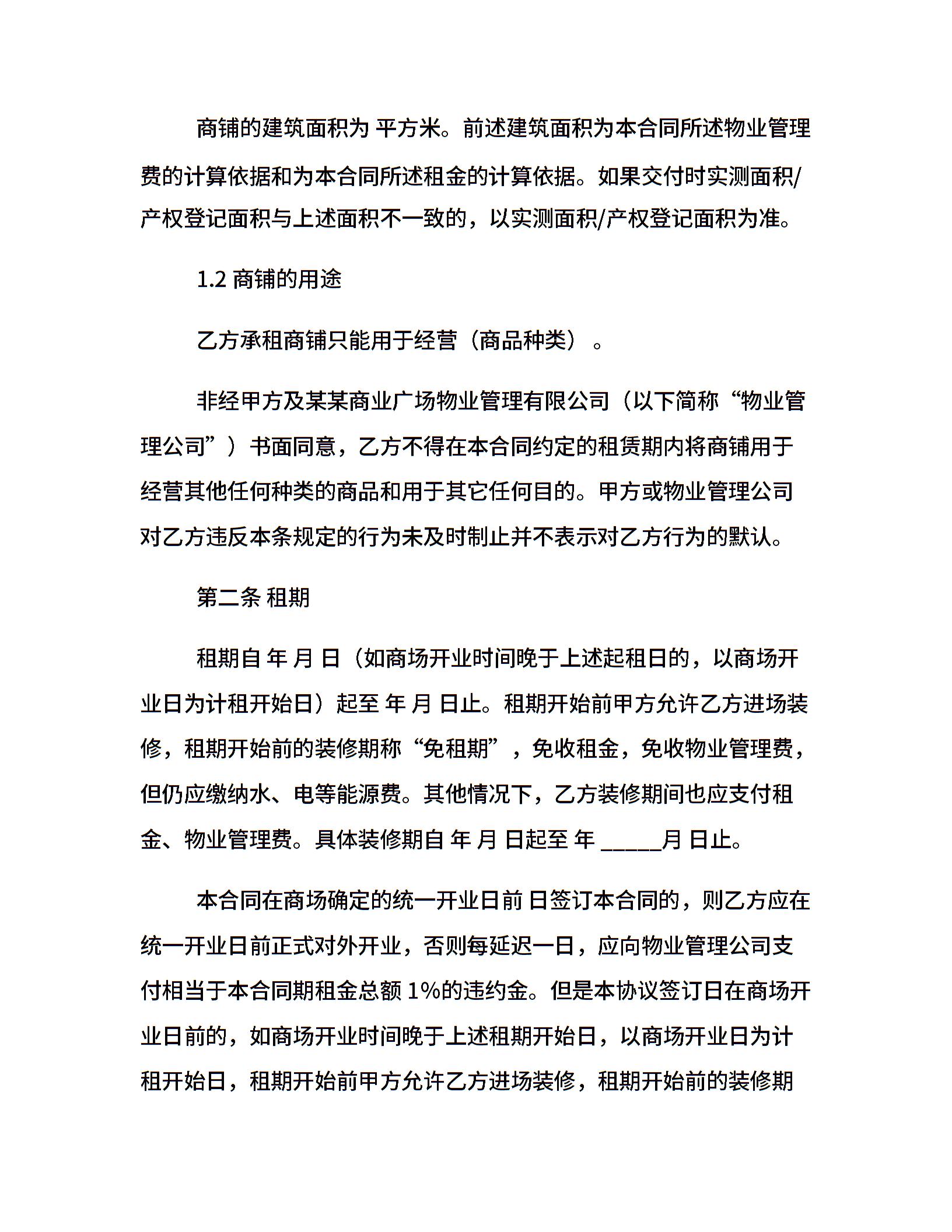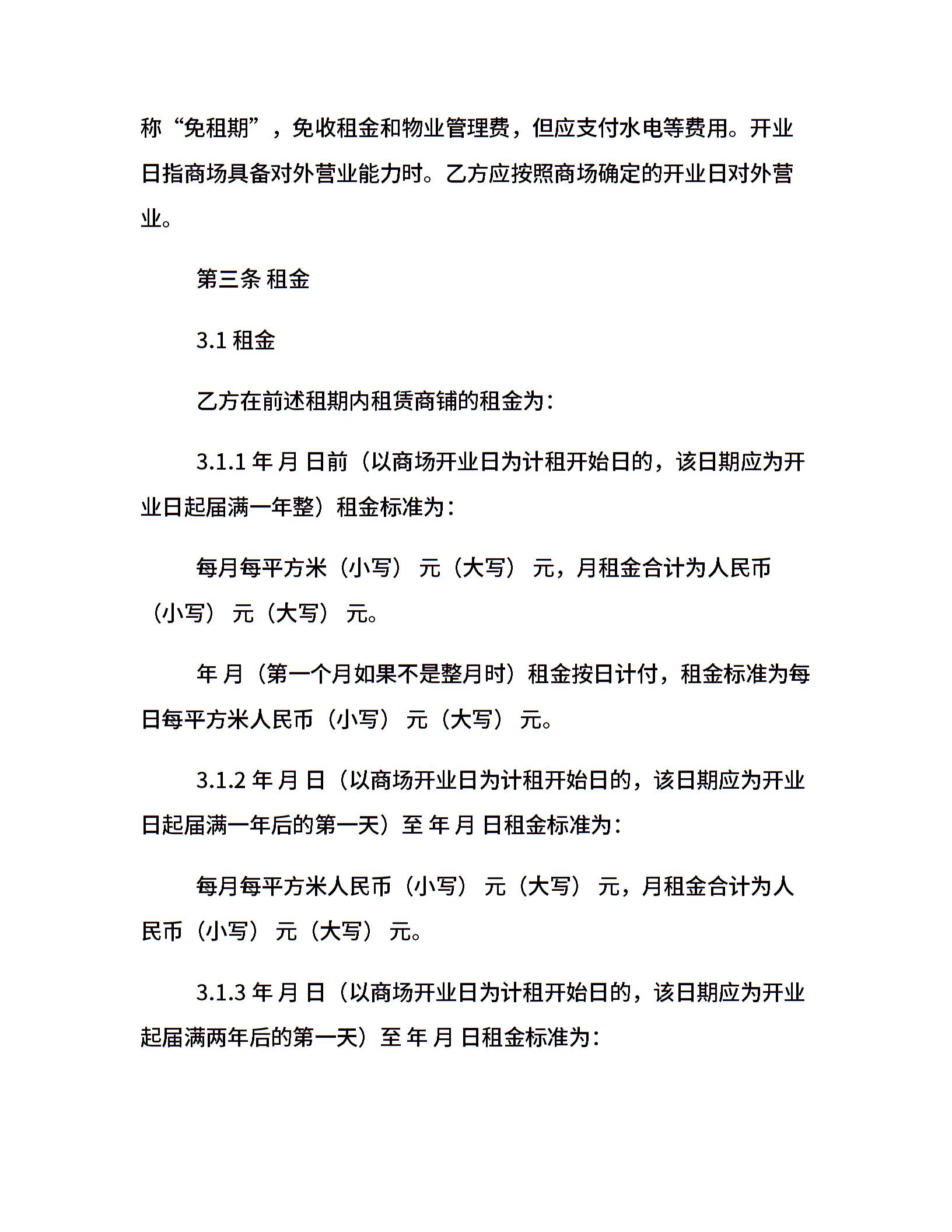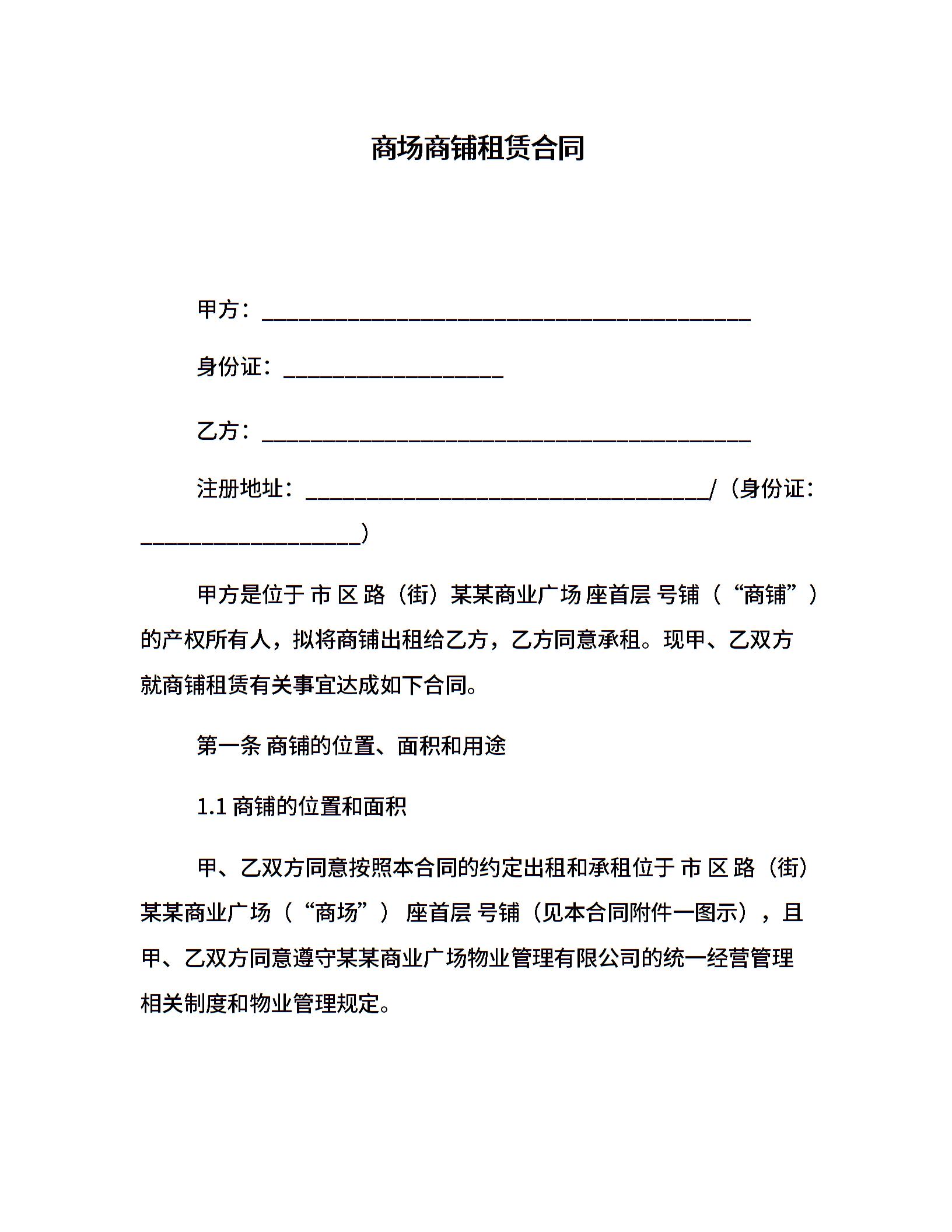 商场商铺租赁合同