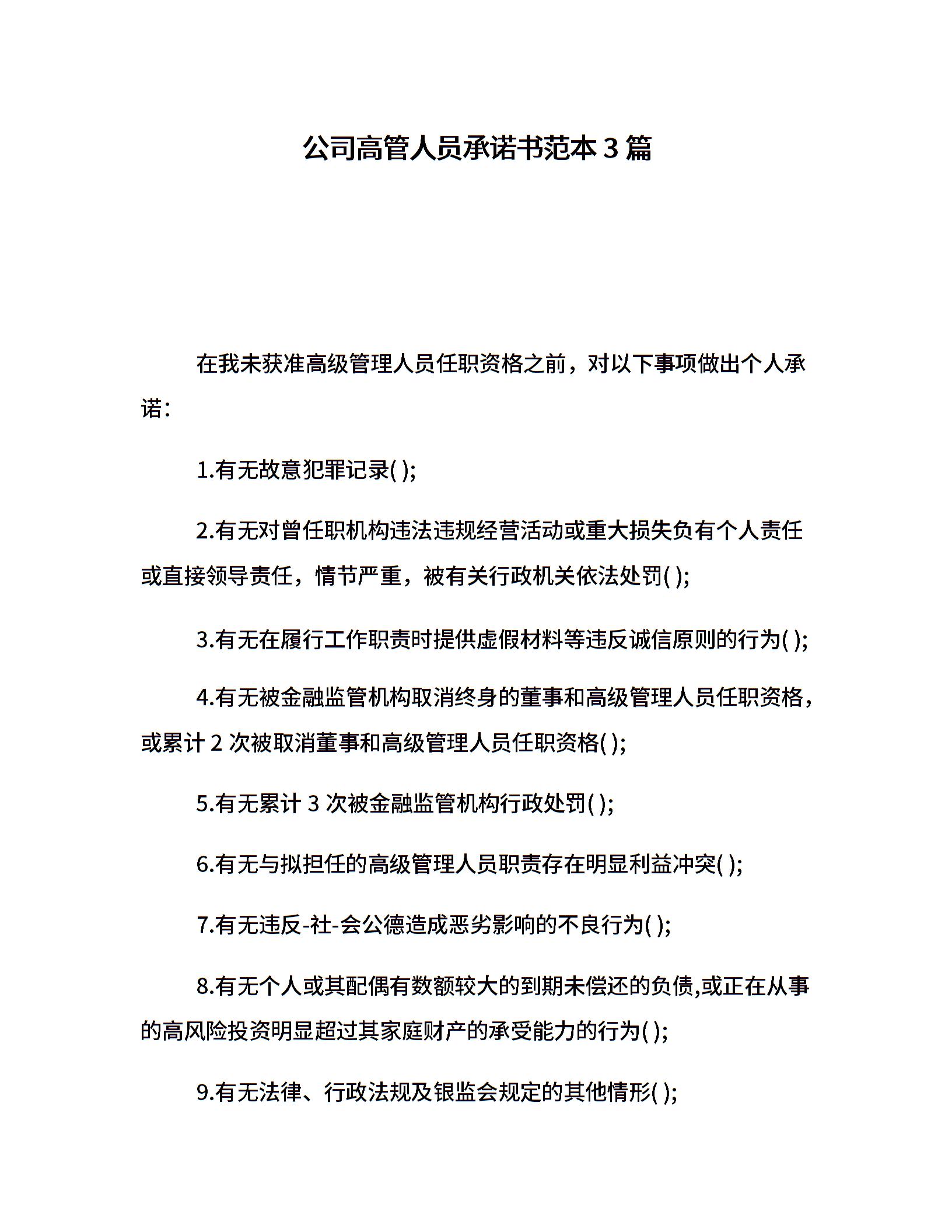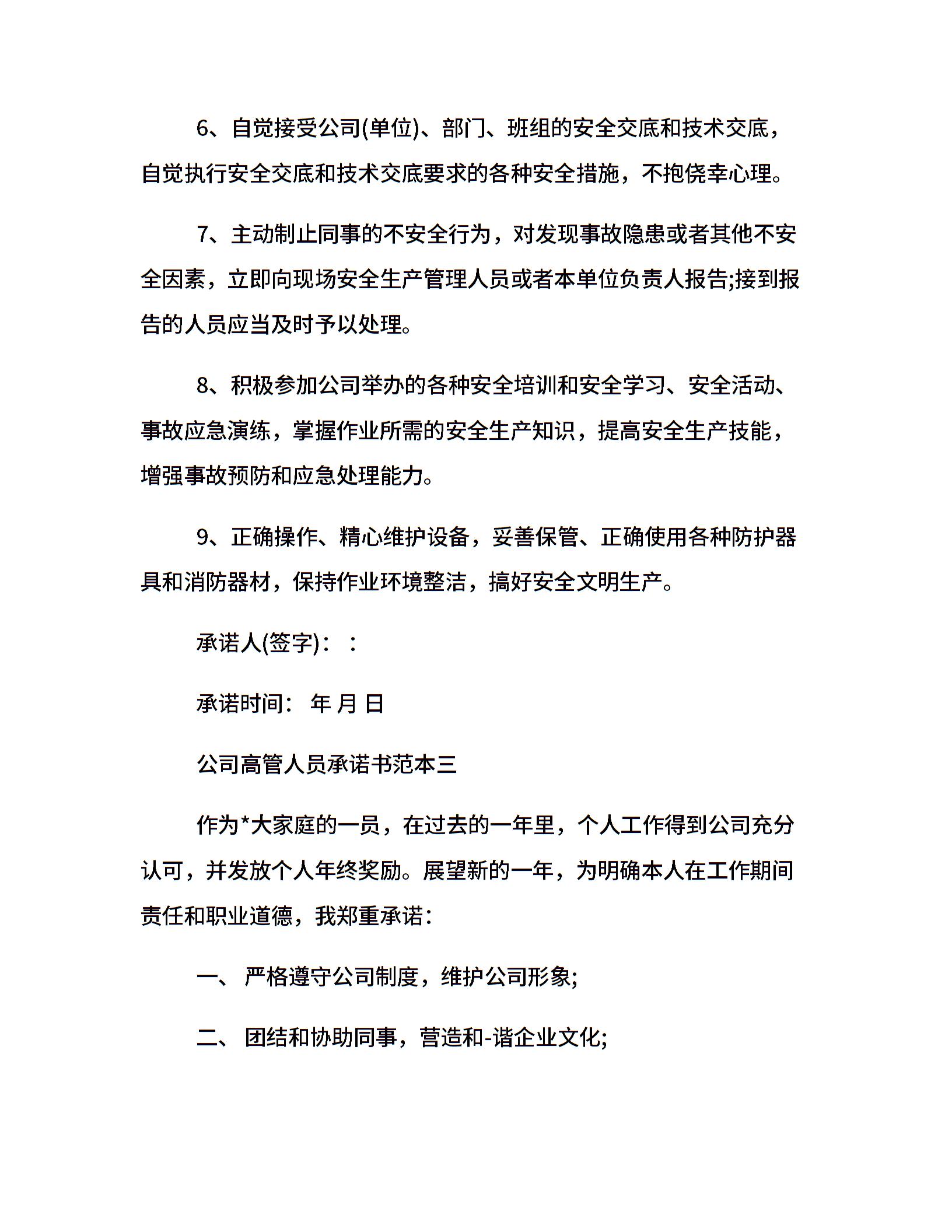 公司高管人员承诺书范本3篇