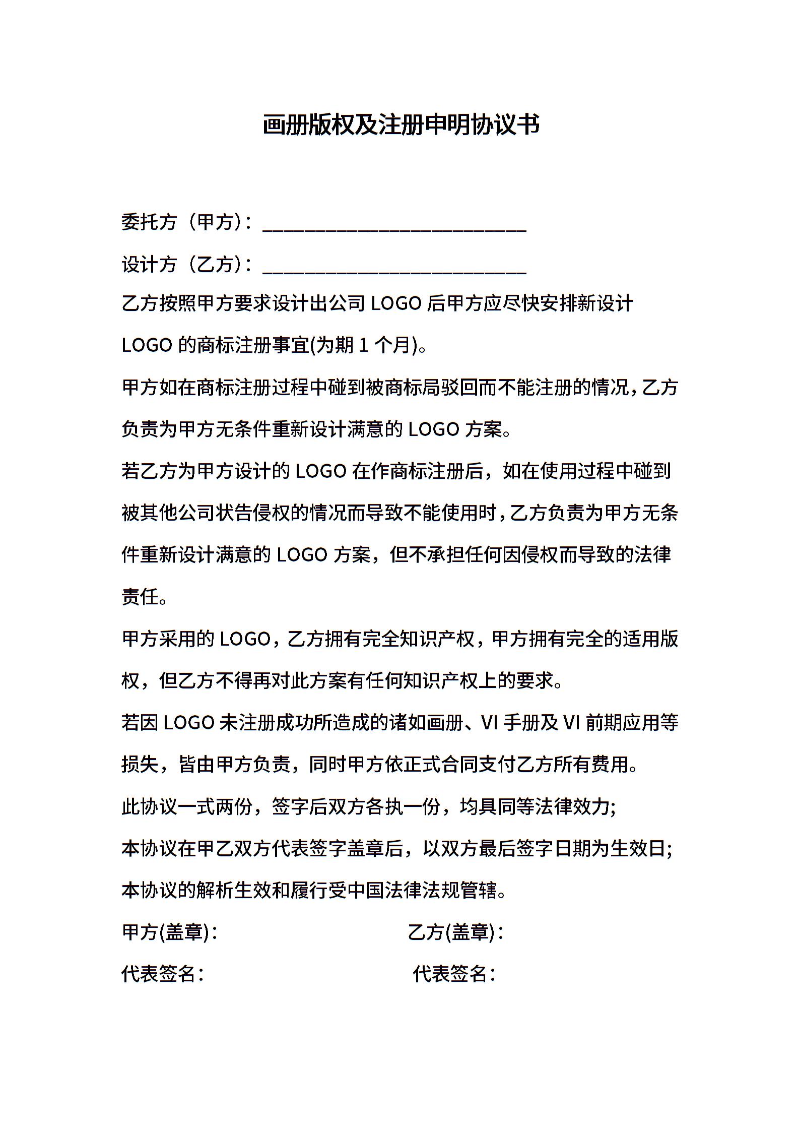 画册版权及注册申明协议书