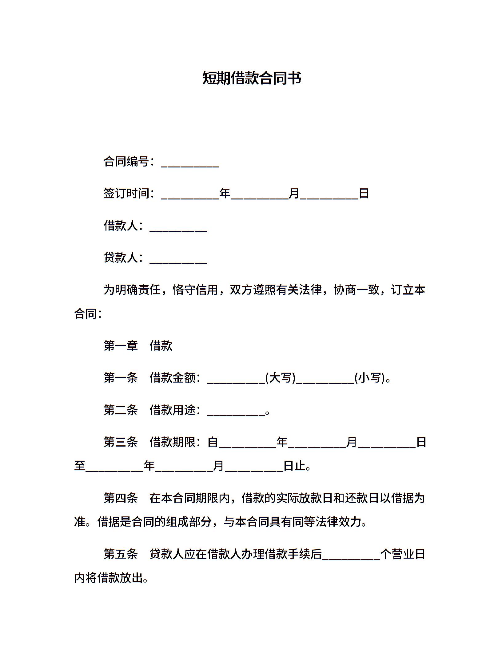 短期借款合同书
