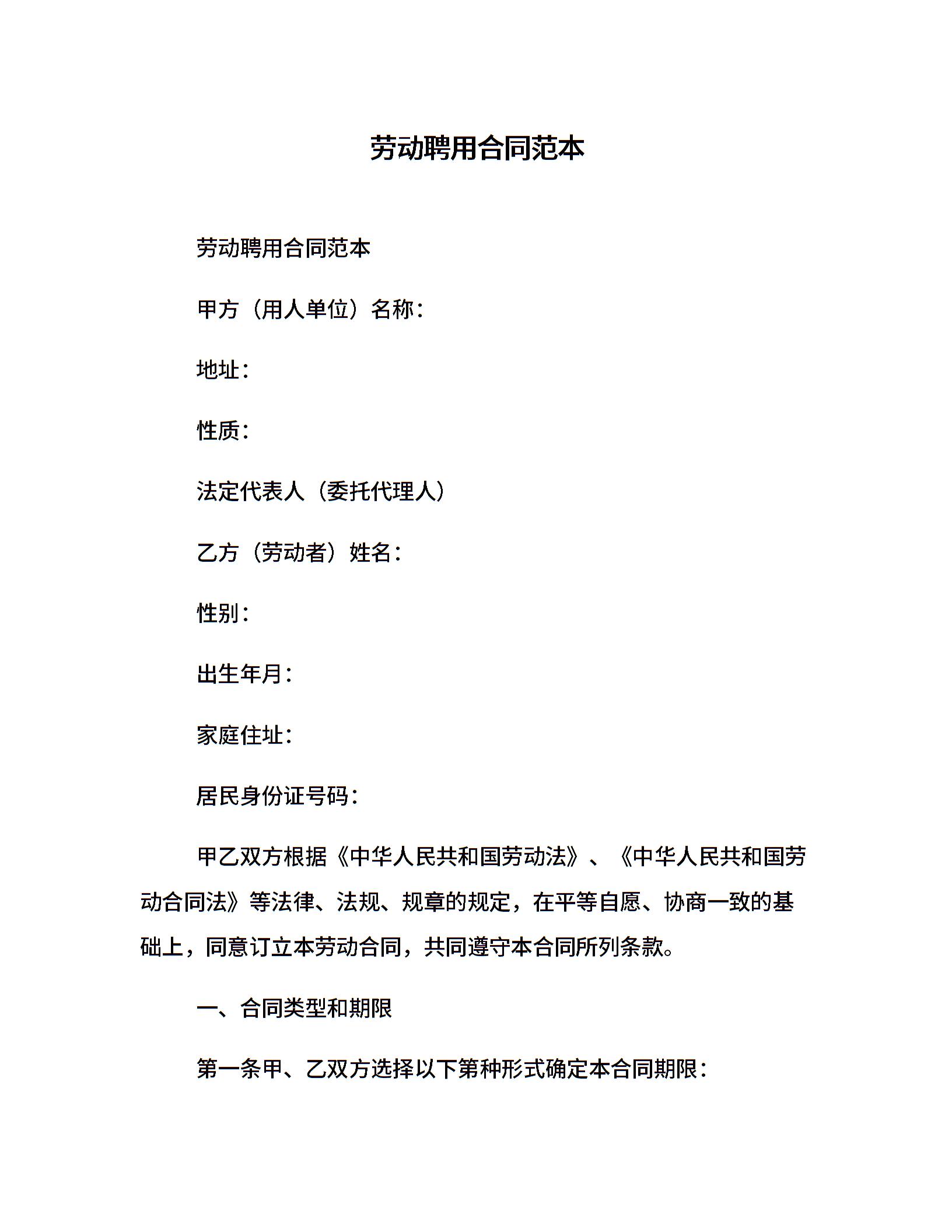 劳动聘用合同范本