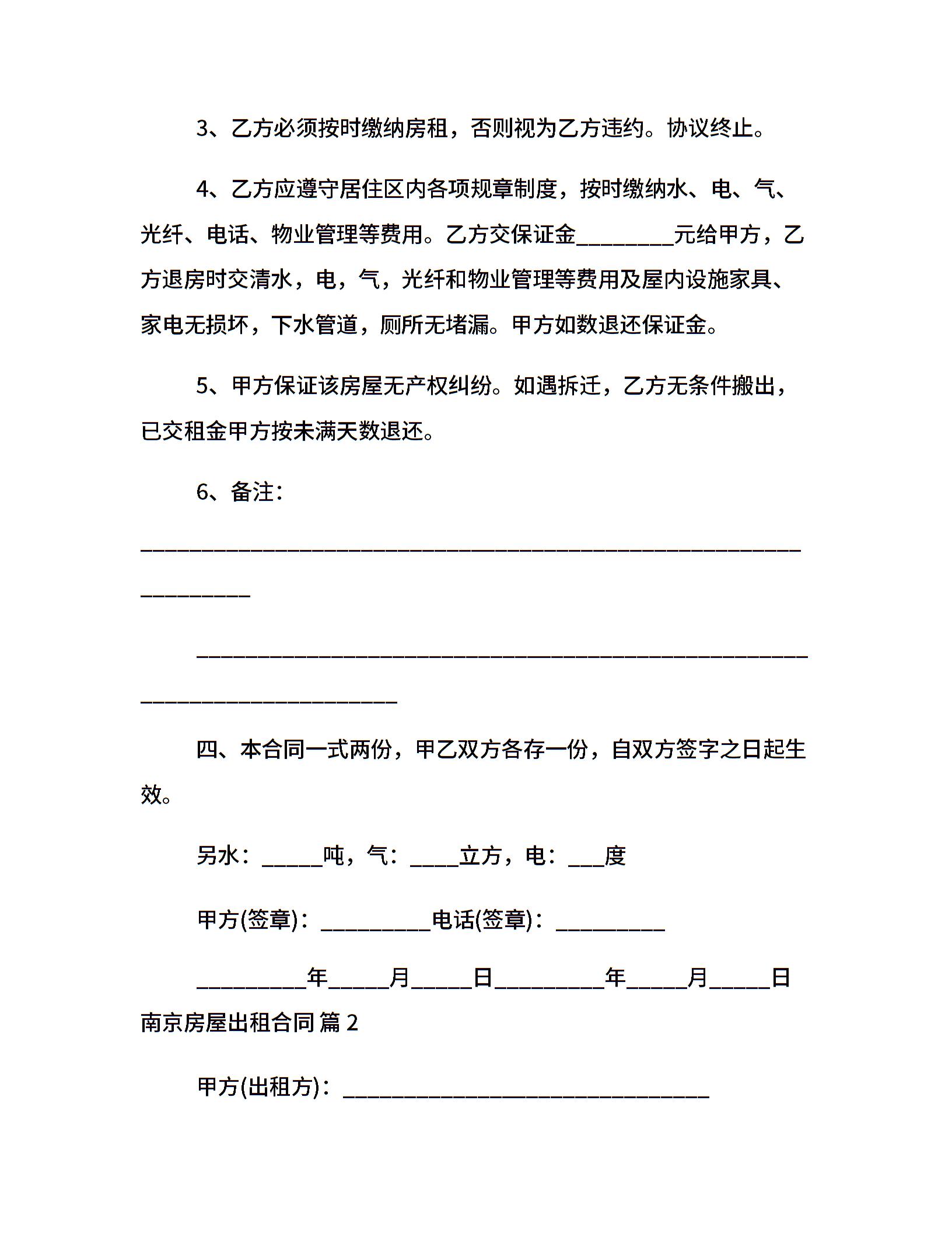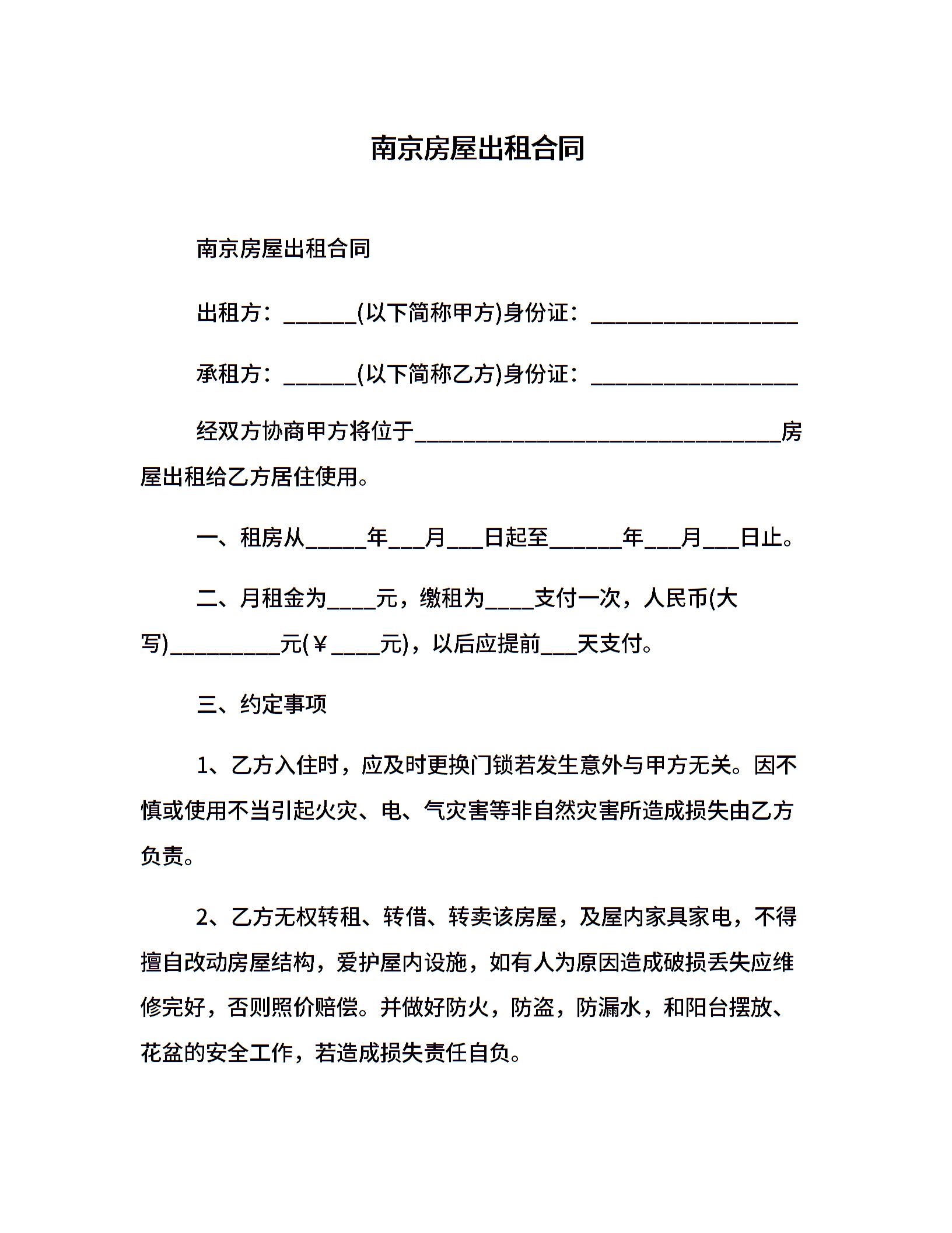 南京房屋出租合同