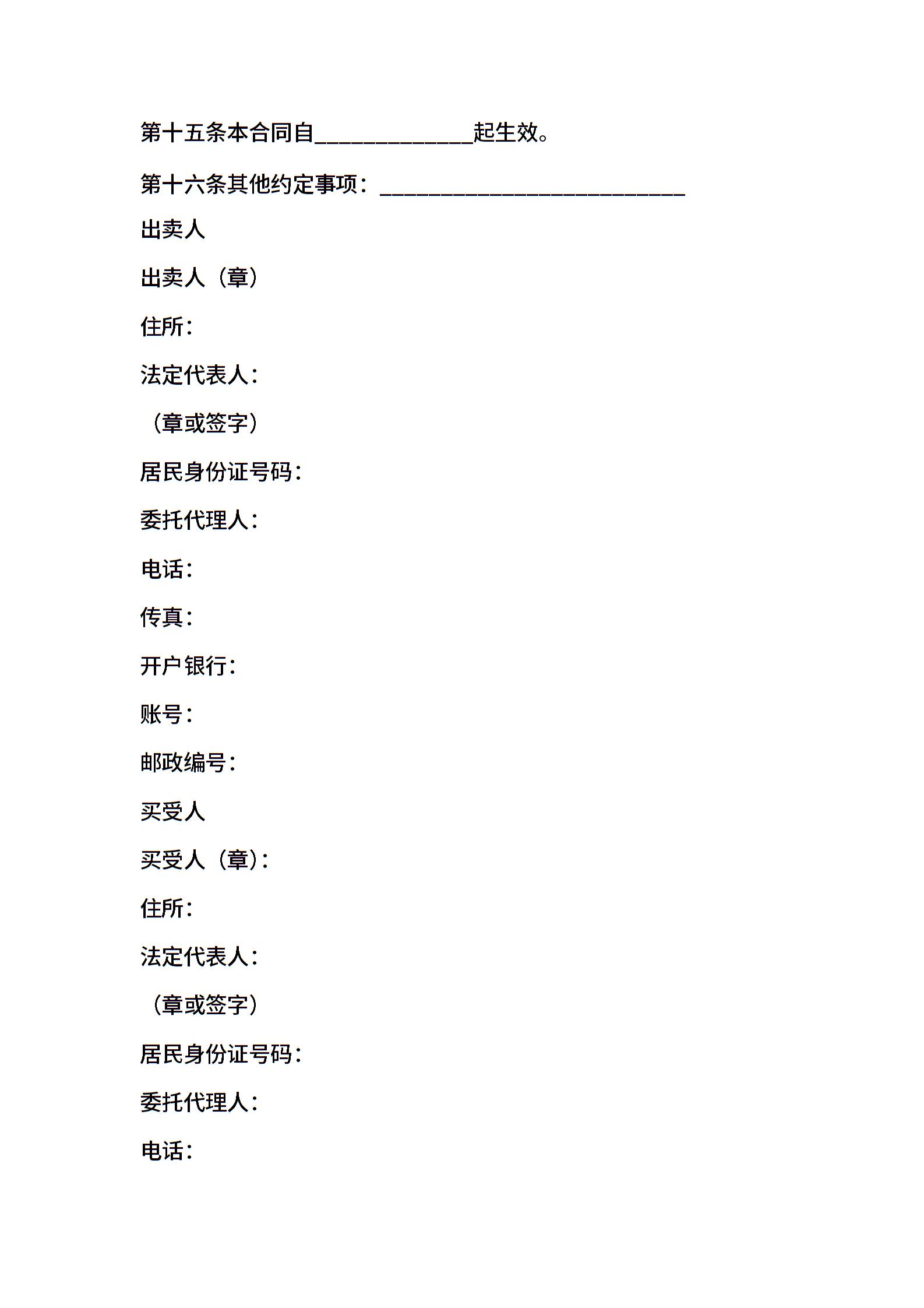 当前位置:量子办公 > 合同模板 > 买卖合同 >