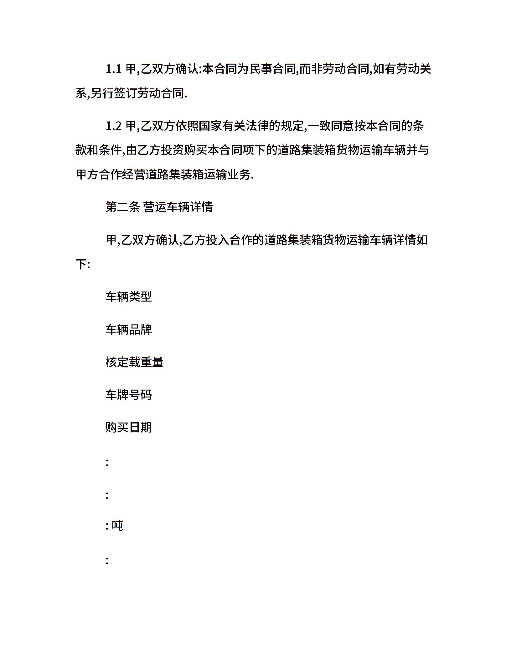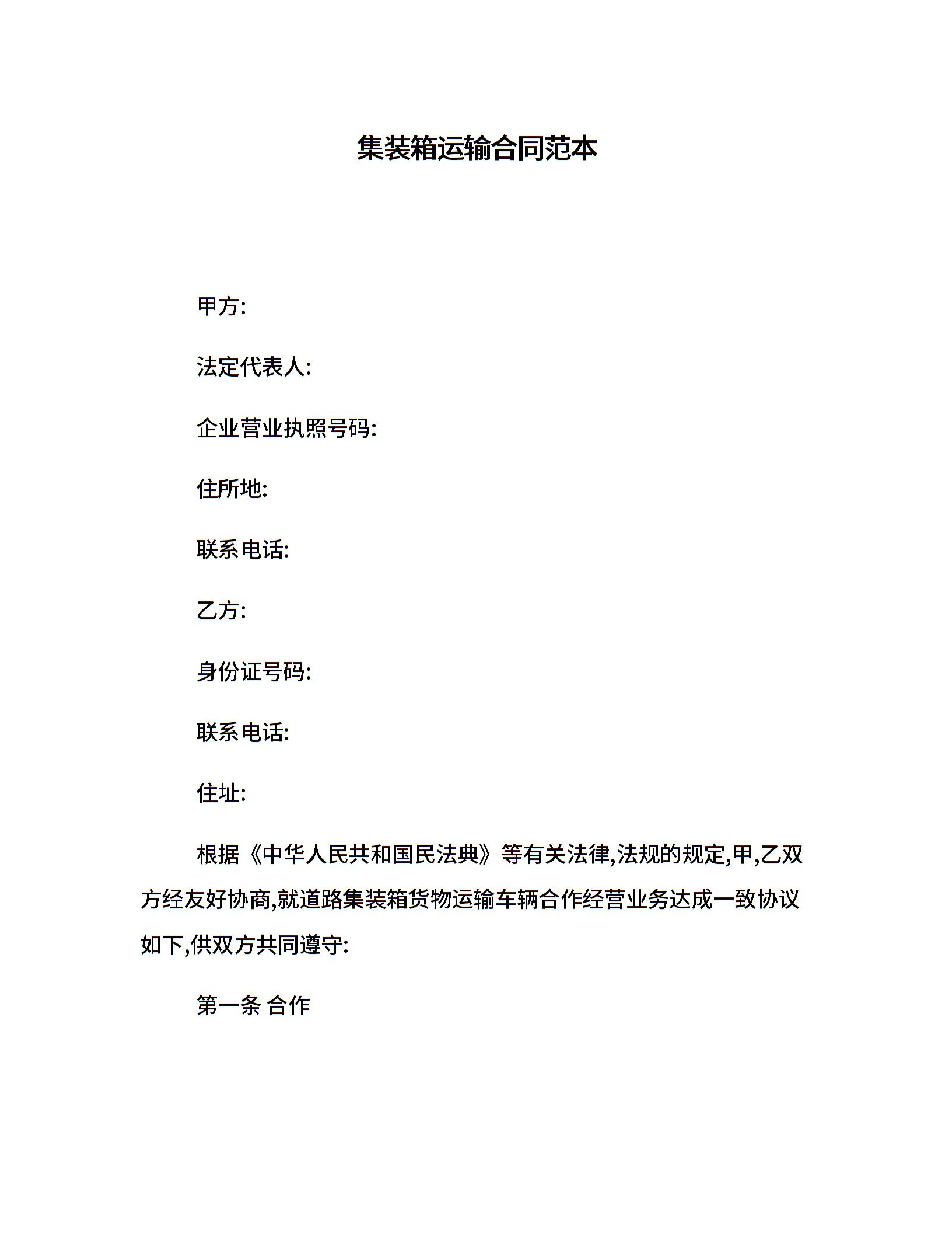 集装箱运输合同范本