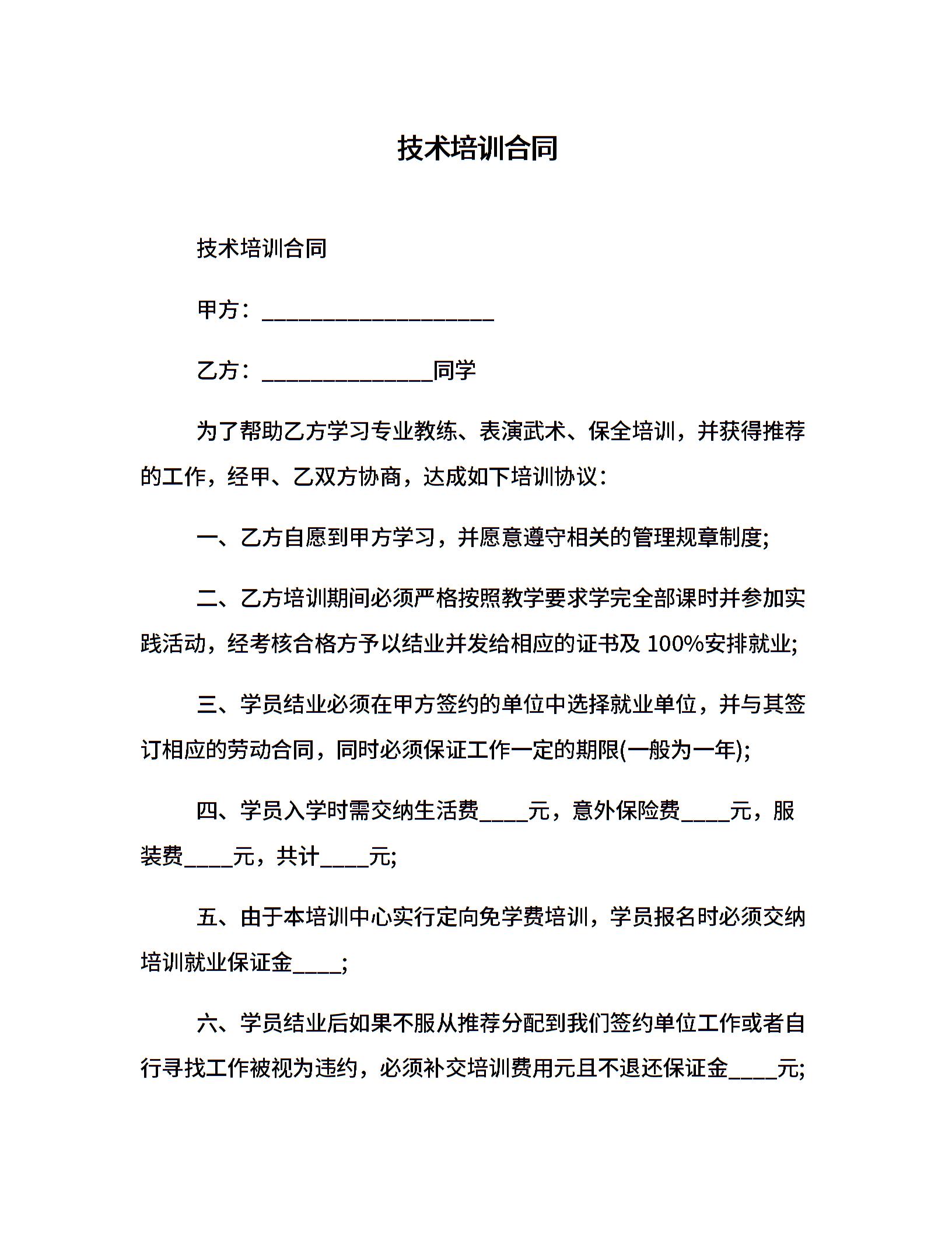 技术培训合同