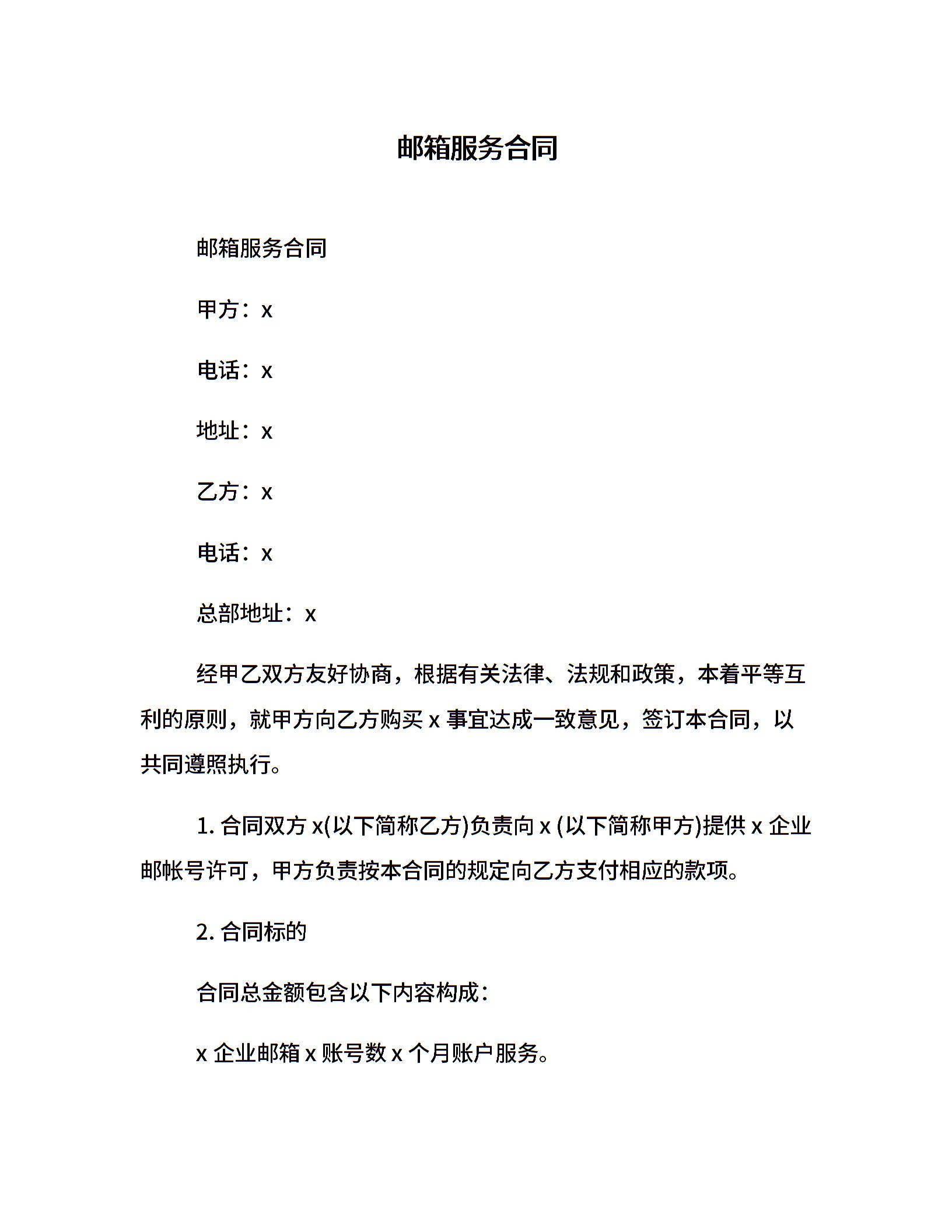 邮箱服务合同