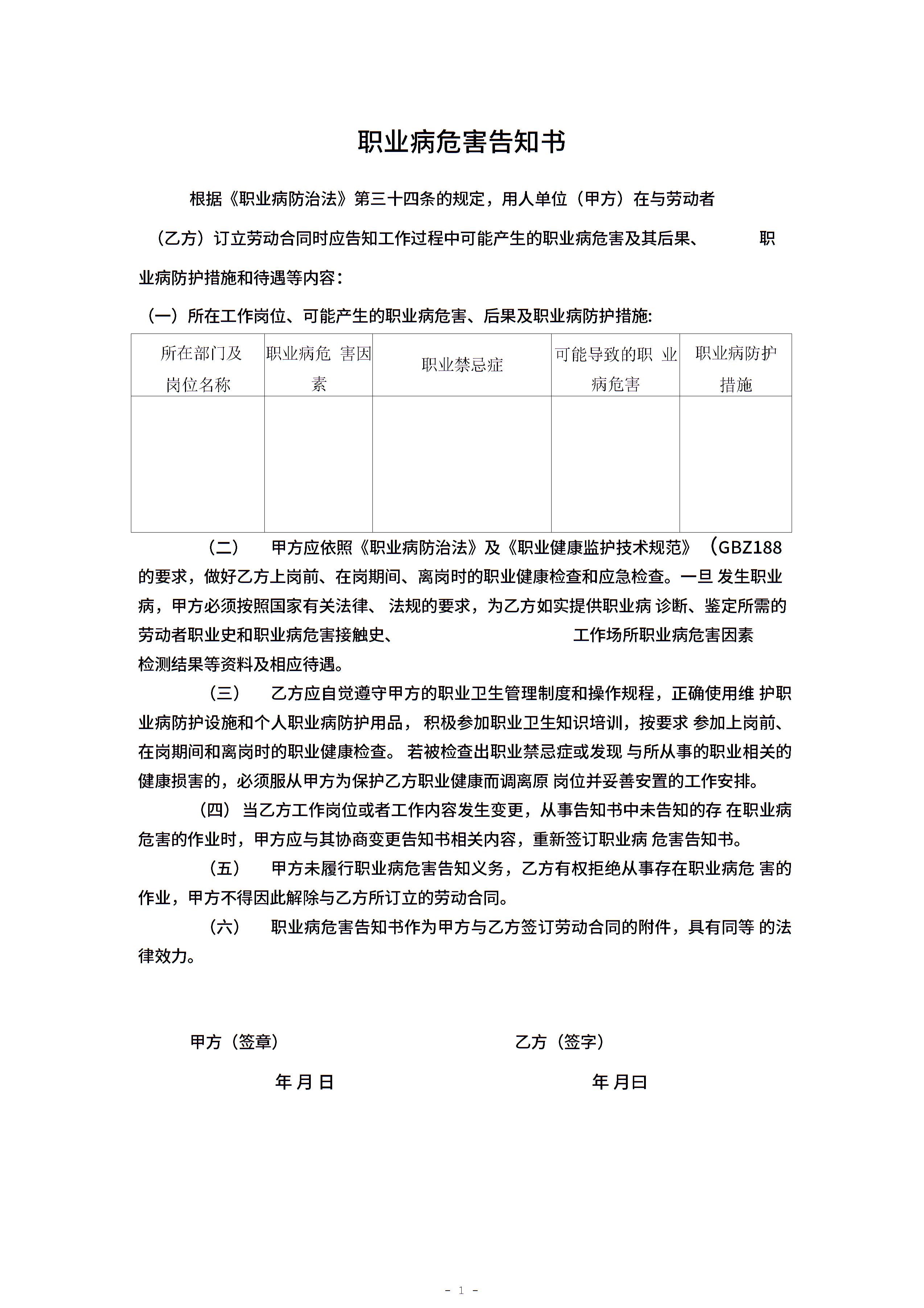 • 分类 职业病协议告知书
