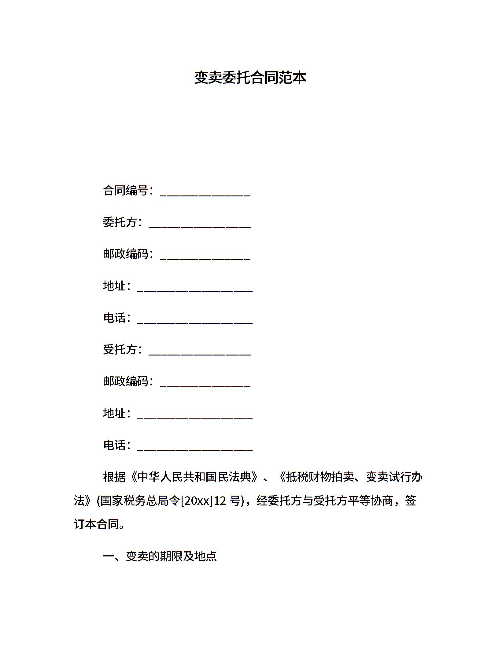 变卖委托合同范本
