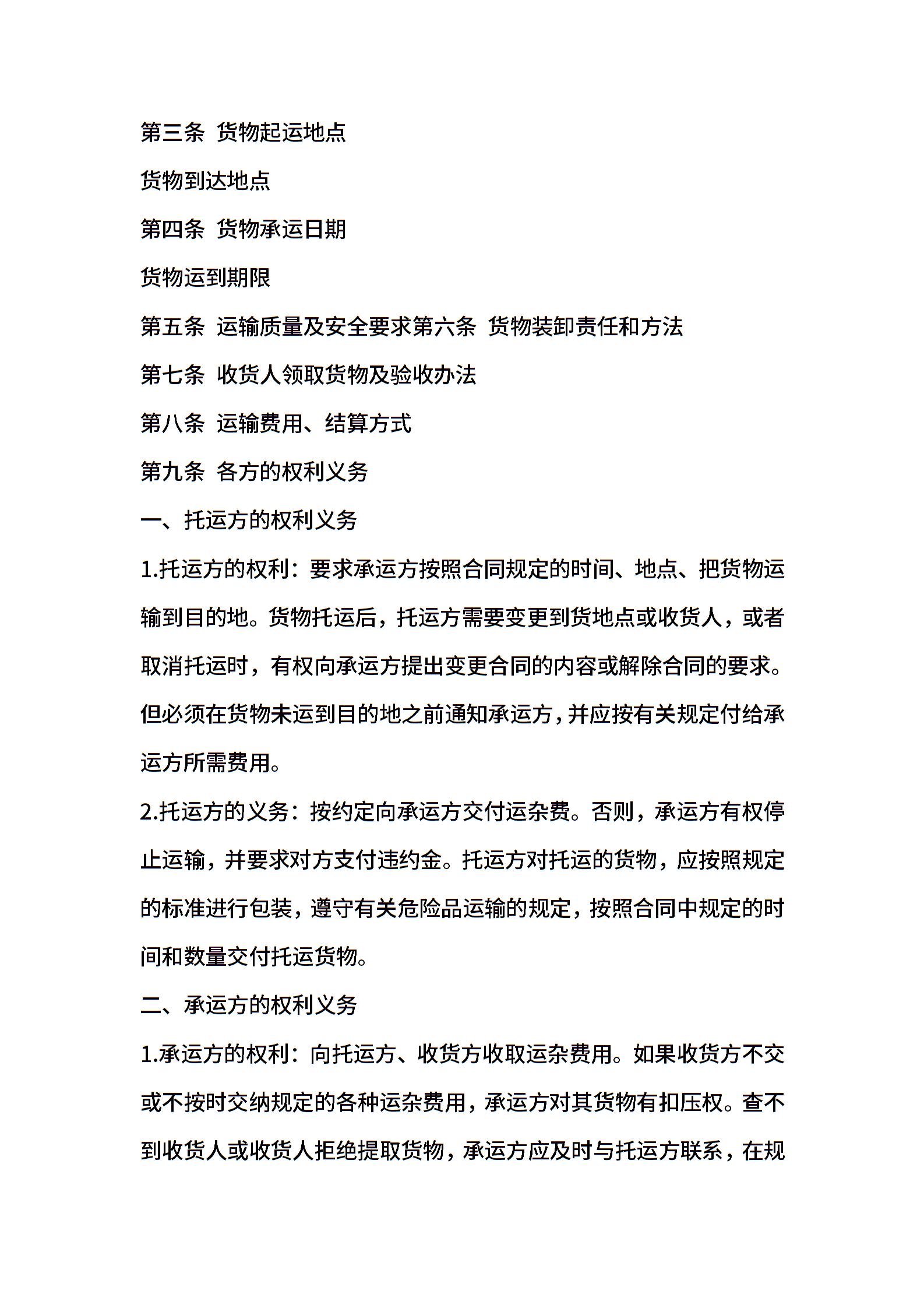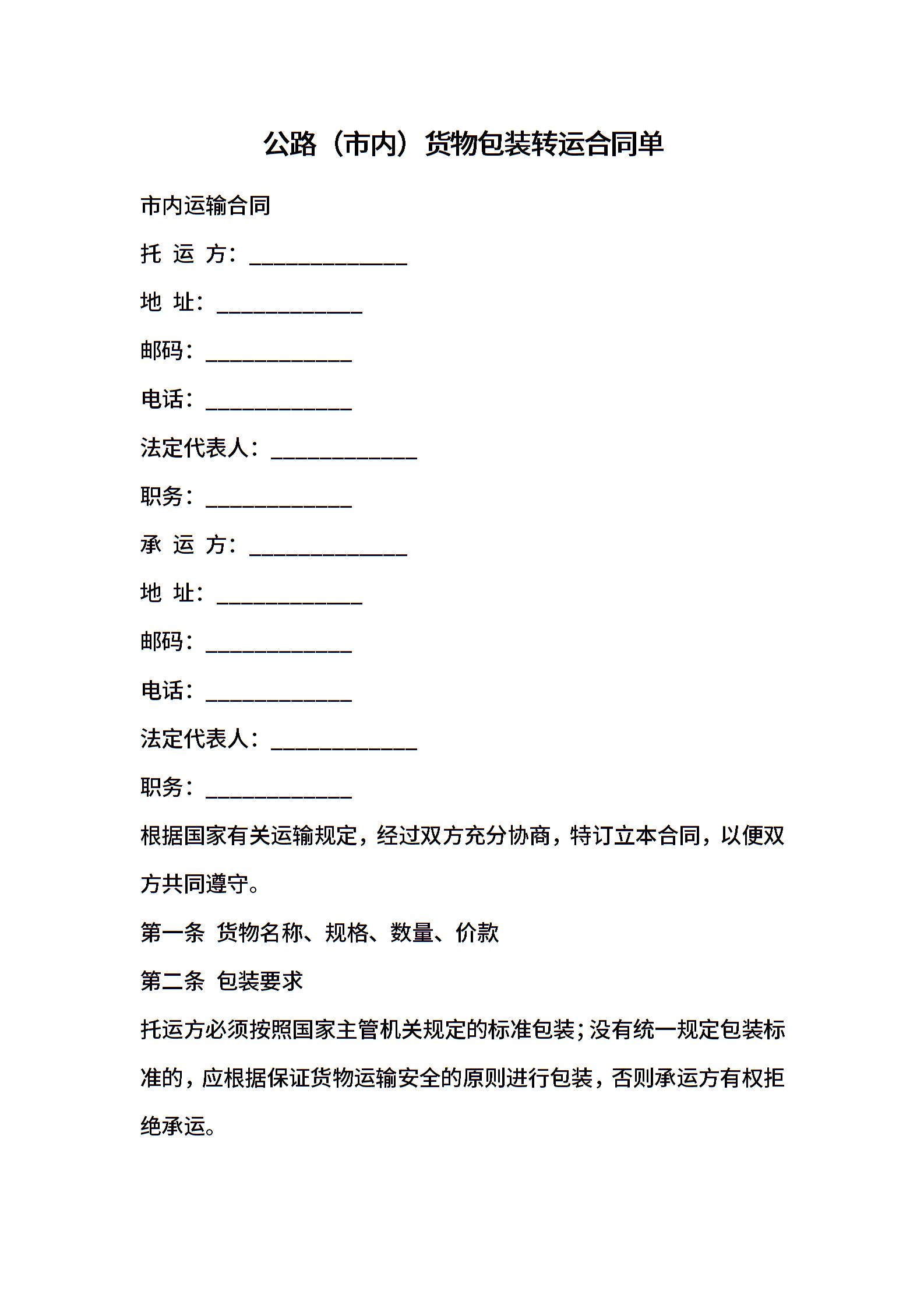 公路(市内)货物包装转运合同单