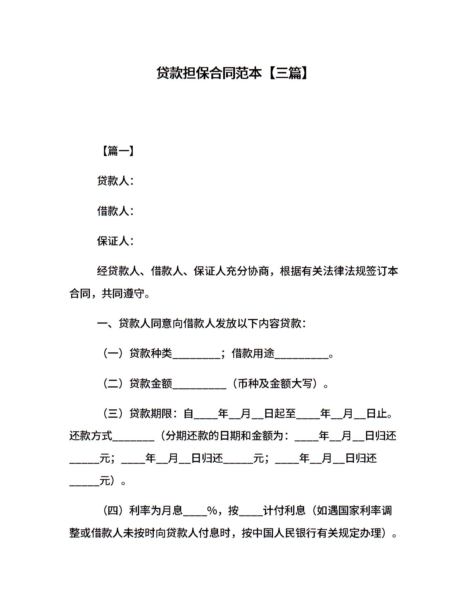 贷款担保合同范本【三篇】